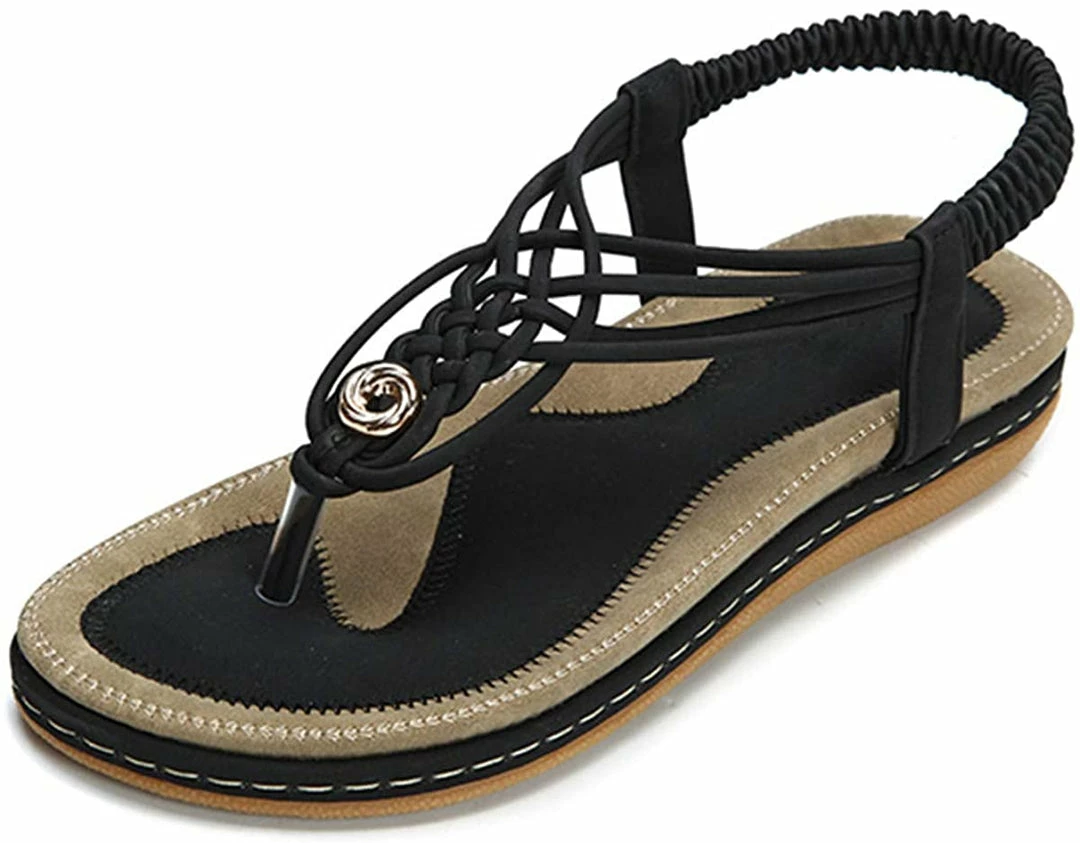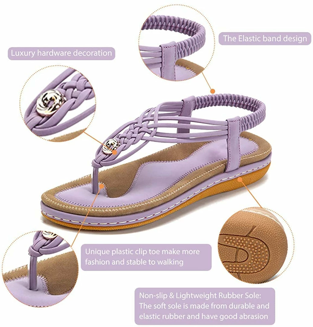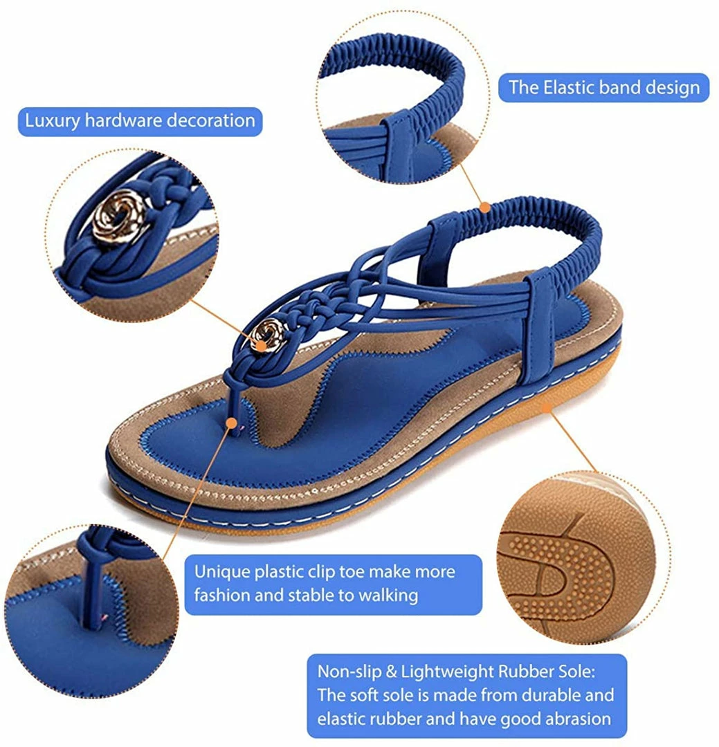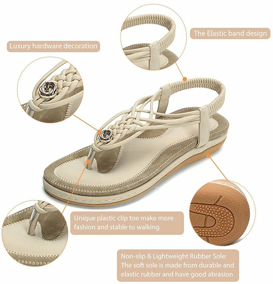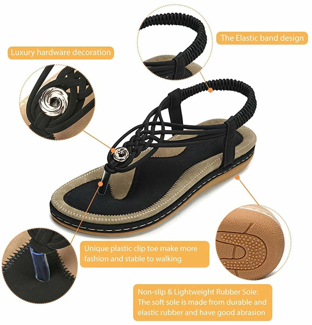 - ➤♥➤Women Flip Flops: Comfortable Chic Thong Sandals 1.Elastic strap can control the size easily 2.The non slip rubber sole makes for a comfortable step .12 Cushioned footbed for all day wearing.