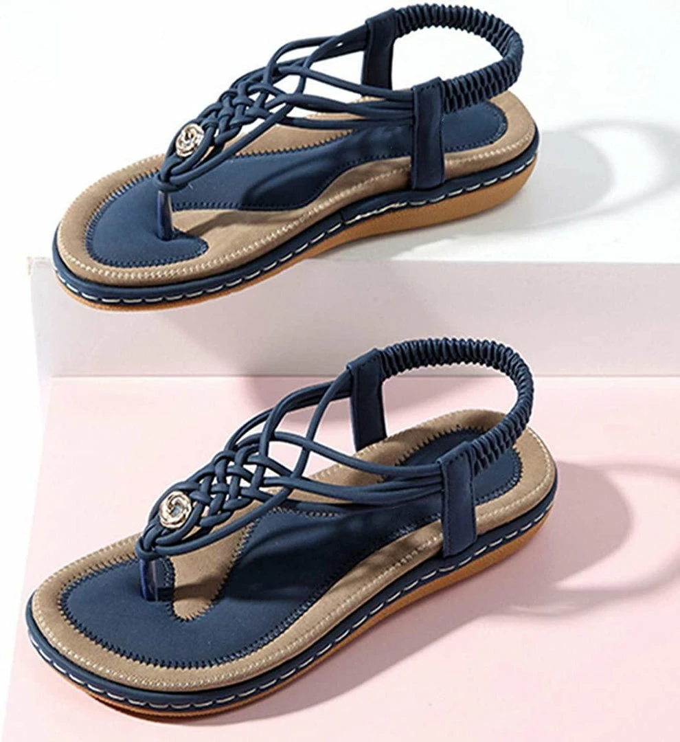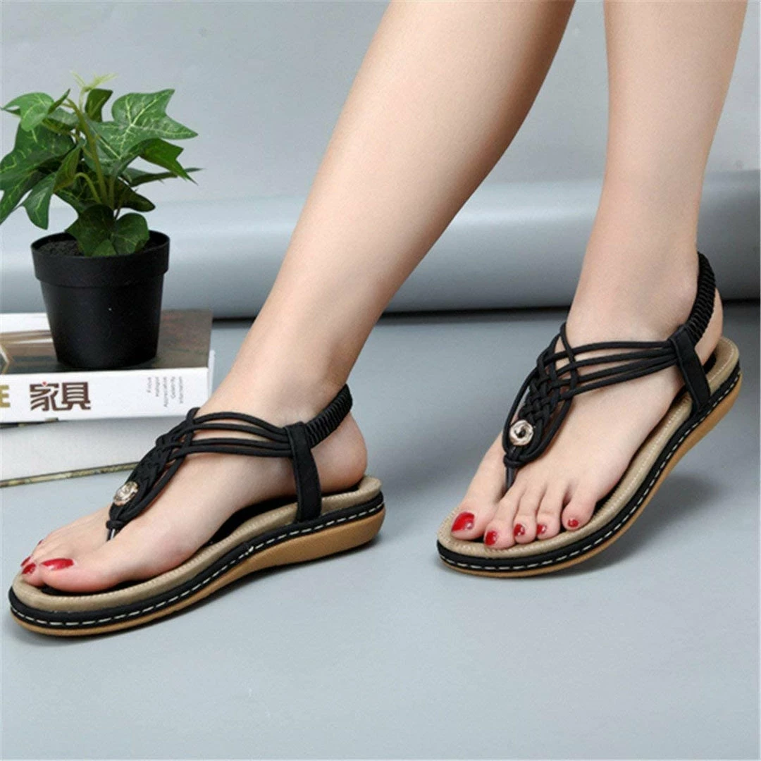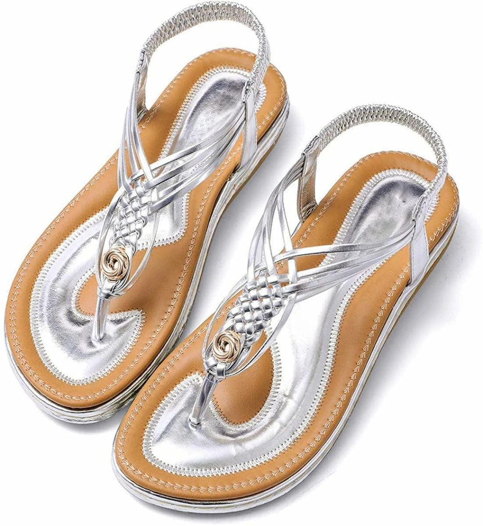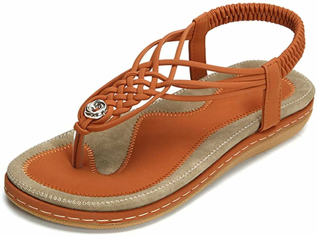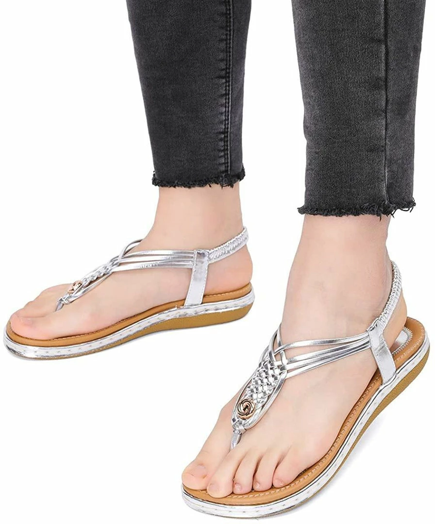 - ➤♥➤Women Flip Flops: Comfortable Chic Thong Sandals 1.Elastic strap can control the size easily 2.The non slip rubber sole makes for a comfortable step .12 Cushioned footbed for all day wearing.