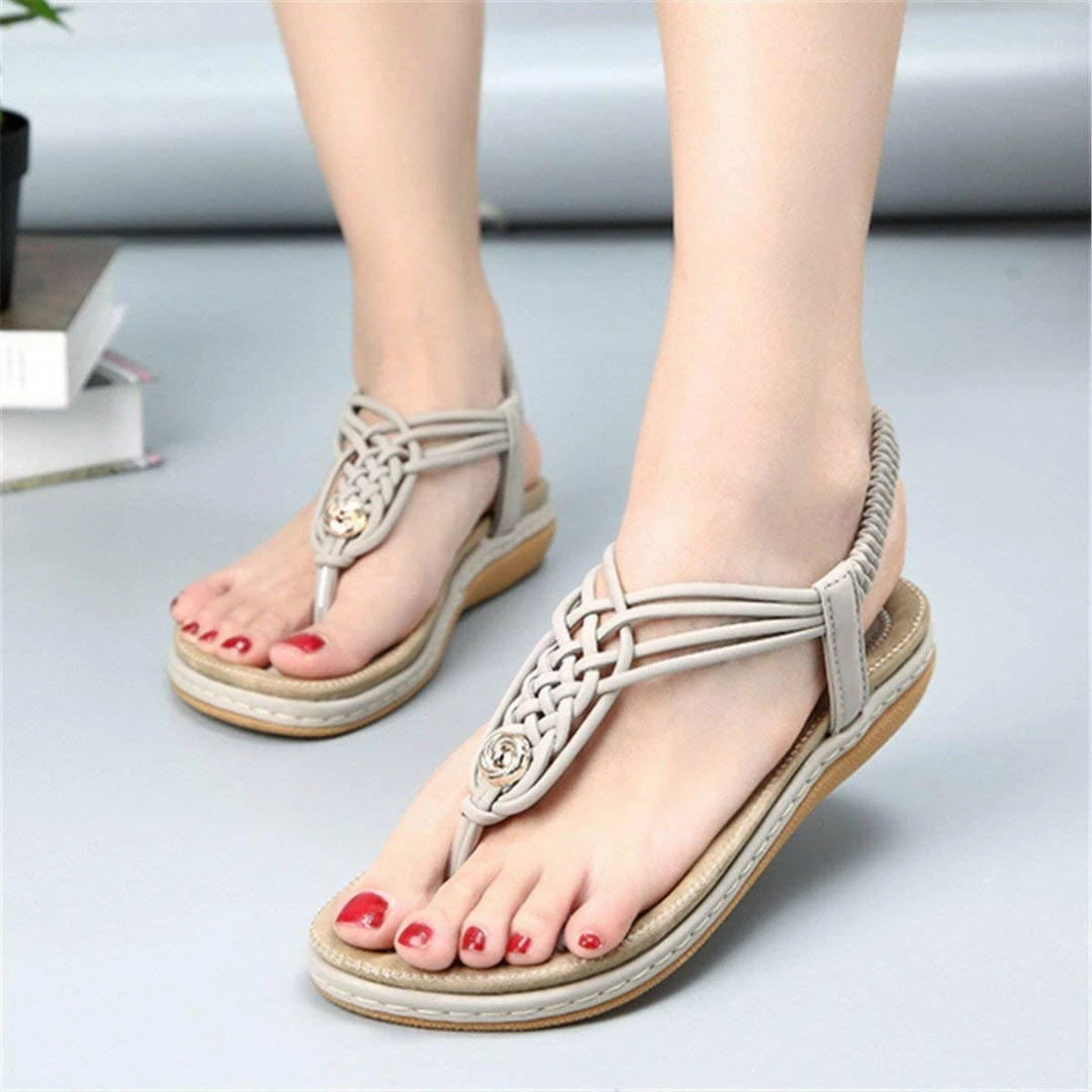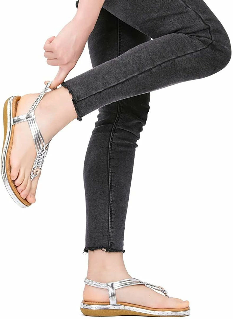 - ➤♥➤STYLISH POST THONGS : Chic Gladiator Sandals made of PU leather + Knit + Rhinestones + Soft Lining + Gum Rubber sole. Comfortable Flip Flops For Womens ,Ladies ,and Girls .The Summer Flats are GOOD CHOICE For Vacation and daliy wear .