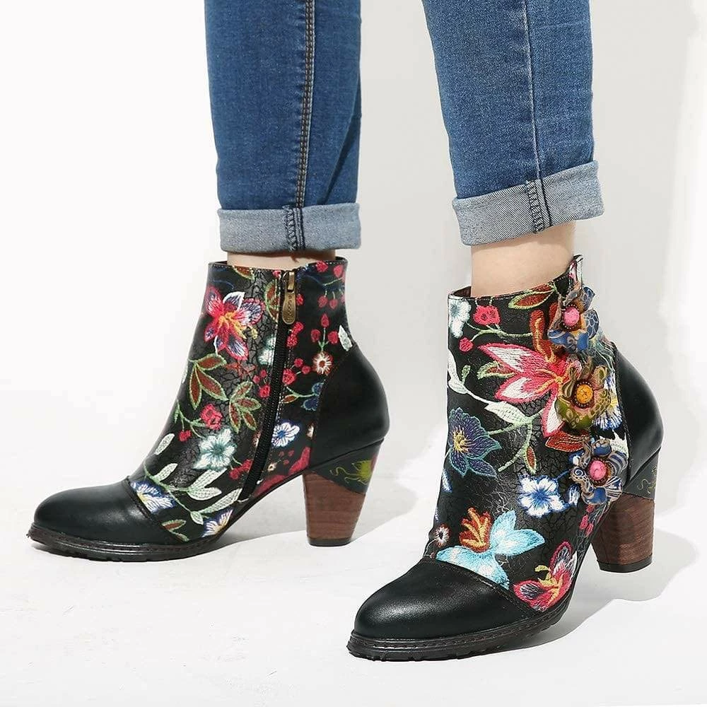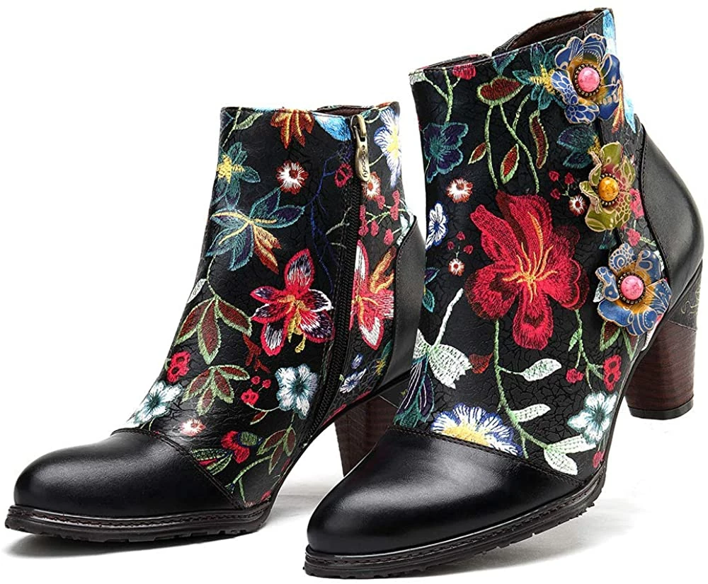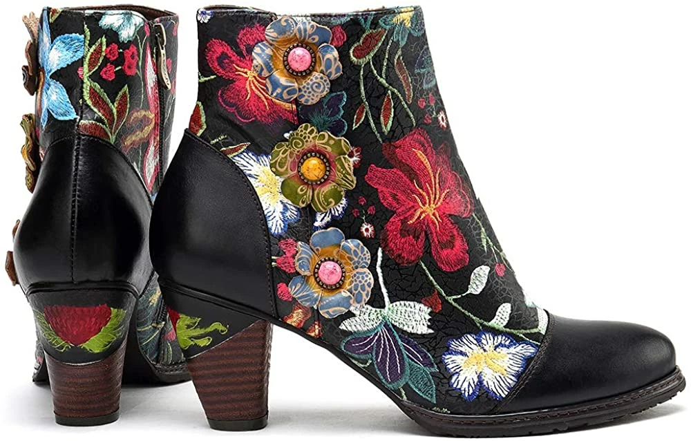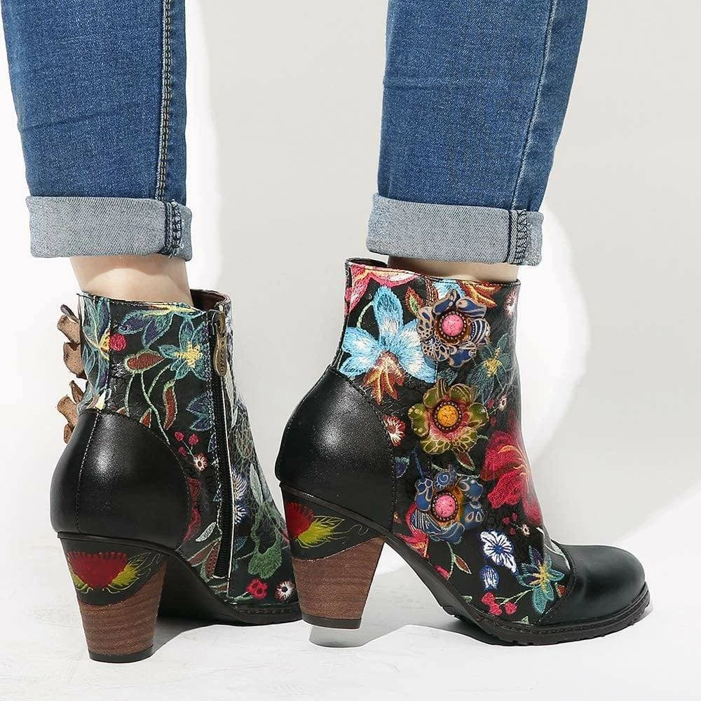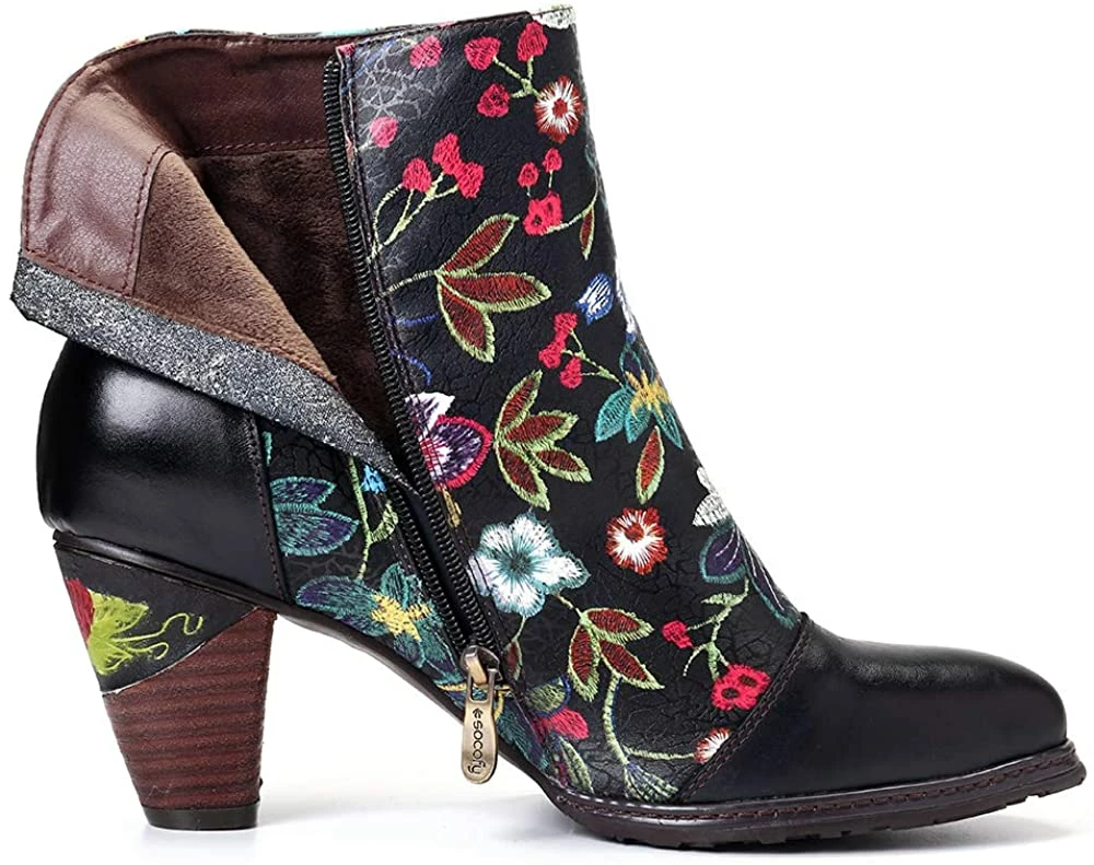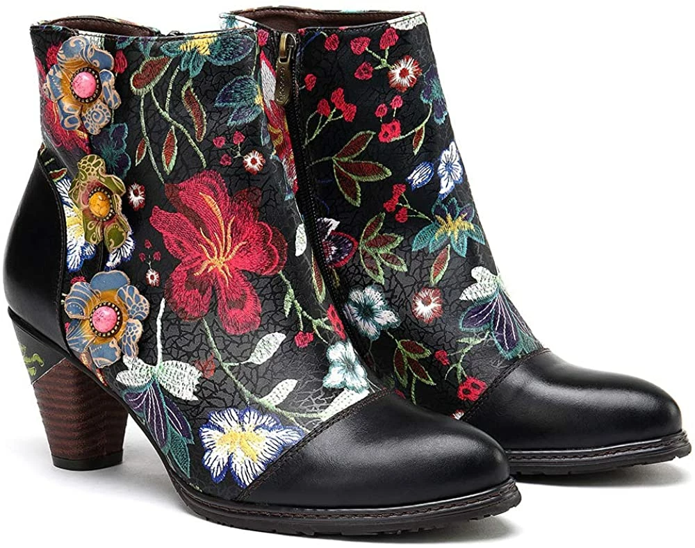 Nuheel® Leather Ankle Boots For Women Low Block Heel Booties Winter Woman