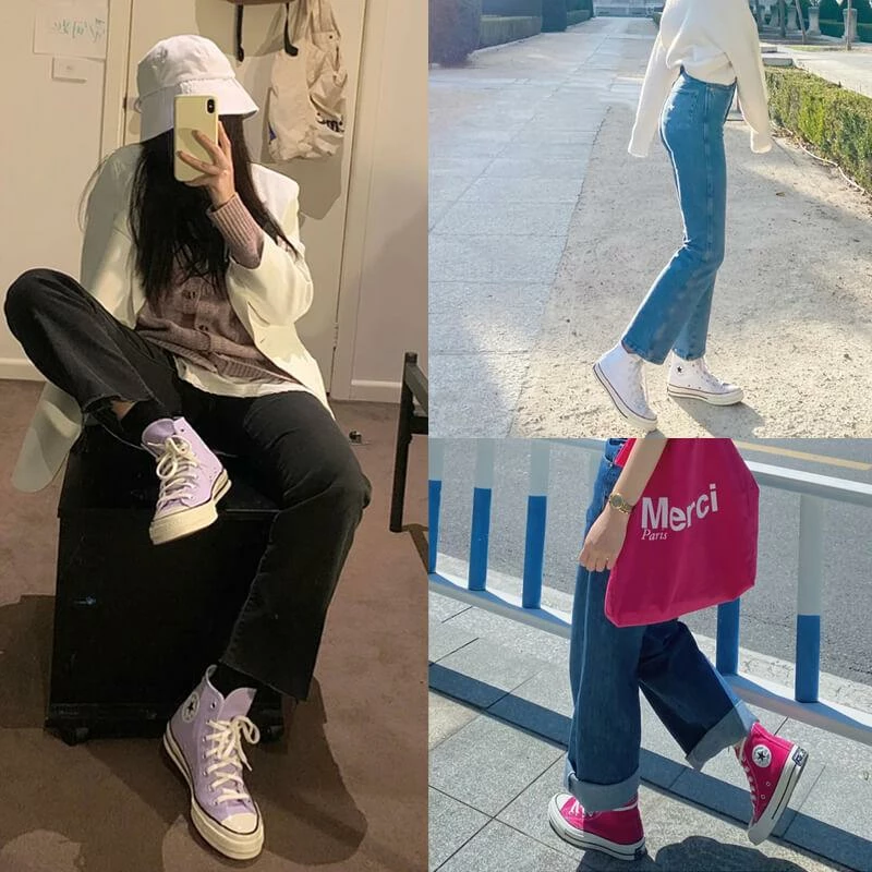 - 【Classic Style】The high-top lace-up canvas sneakers are good match for a variety of clothes. All year round shoes go well with jeans ,shorts ,skirts and so on.