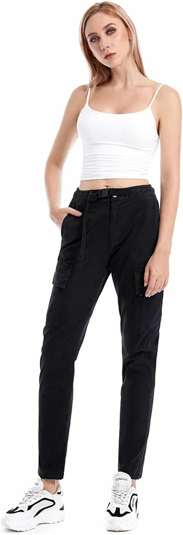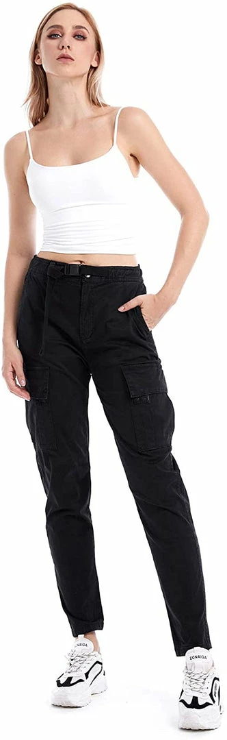 1.Adjustment belt with buckle:The casual pants adopt the fashion card buckle waist belt cutting design, the hanging type waist belt design, can let oneself easily DIY. The overalls is both practical and fashionable aesthetic feeling.