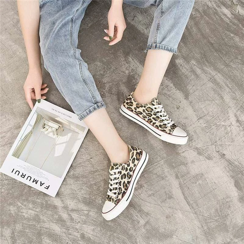 Nuheel® Sneakers For Women Leopard Canvas Low Top Lace-up Classic Casual Shoes