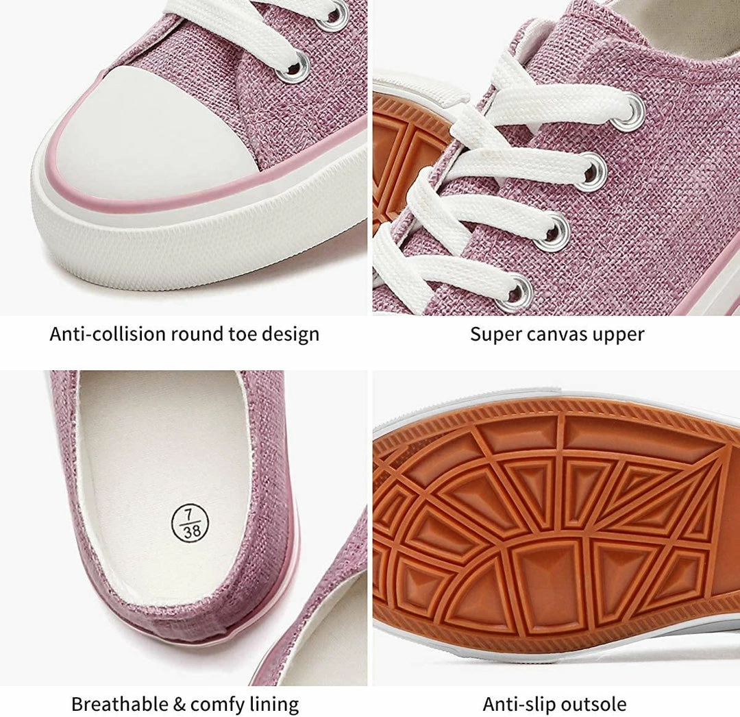 - 【Qualified Material】:low top canvas sneakers are made with superior canvas material,contrasting stitching on upper and tirpe vulcanized rubber sole.