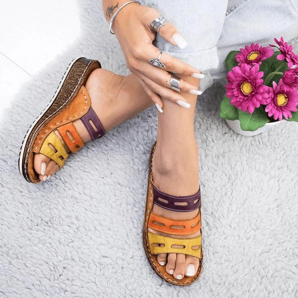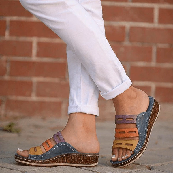 Nuheel® Woman Women Premium Orthopedic Open Toe Vintage Anti-Slip Breathable Sandals PU Wedge Heel Slippers With Hollow-out Shoes