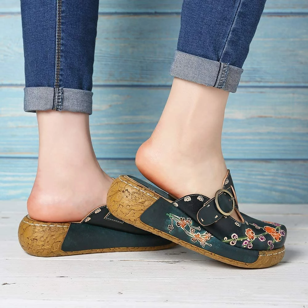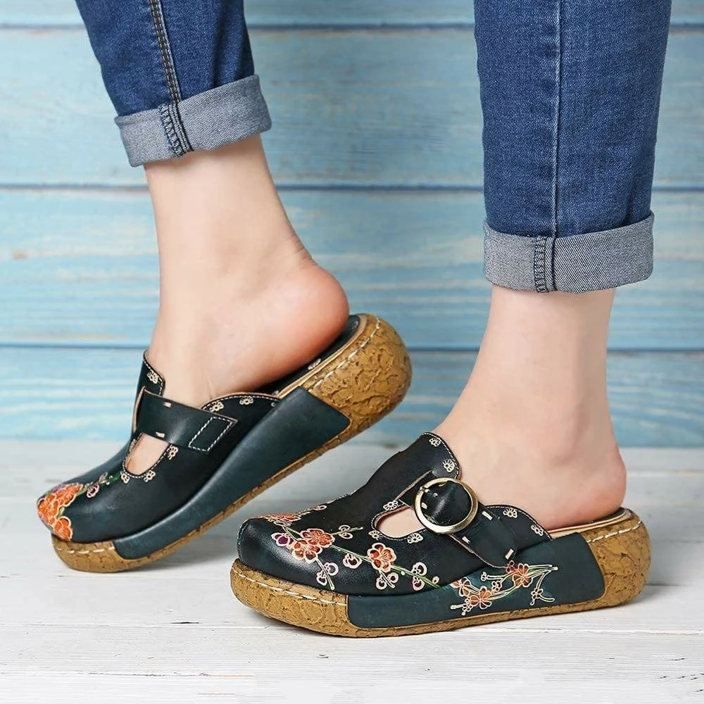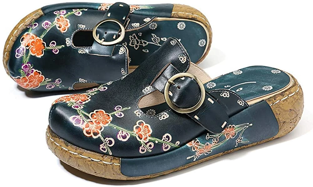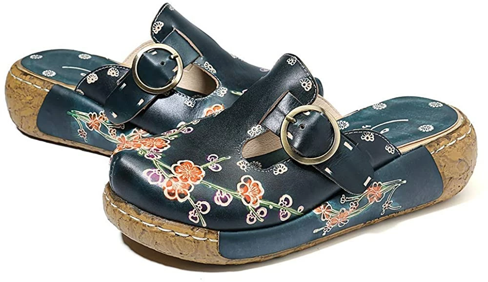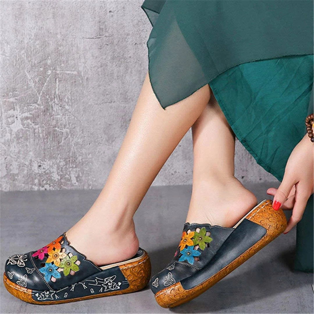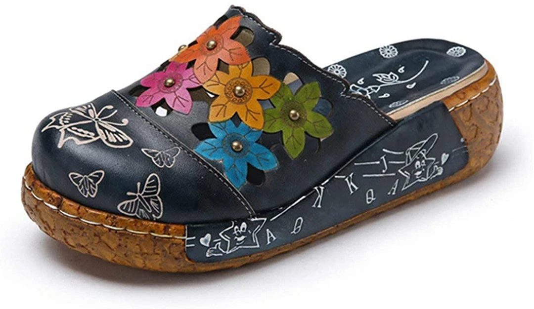 - ➤Charming Style: —- Handmade,laser engraving,precision car line,Vintage-Backless heels and chic flower edges desigh to show off your charm,soft comfortable insole for easy slip on,durable and anti rubber sole,let each step all relaxed and comfortable