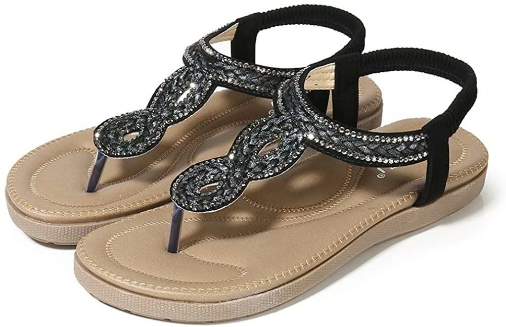 - STYLE: Pretty, elegant and fashionable flat sandals with unique rhinestones decorated