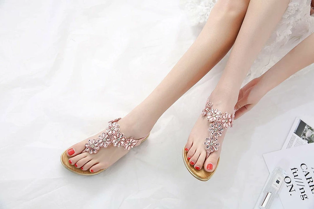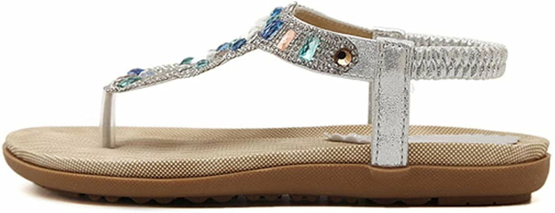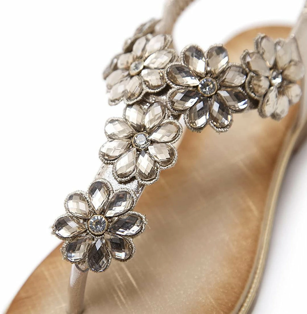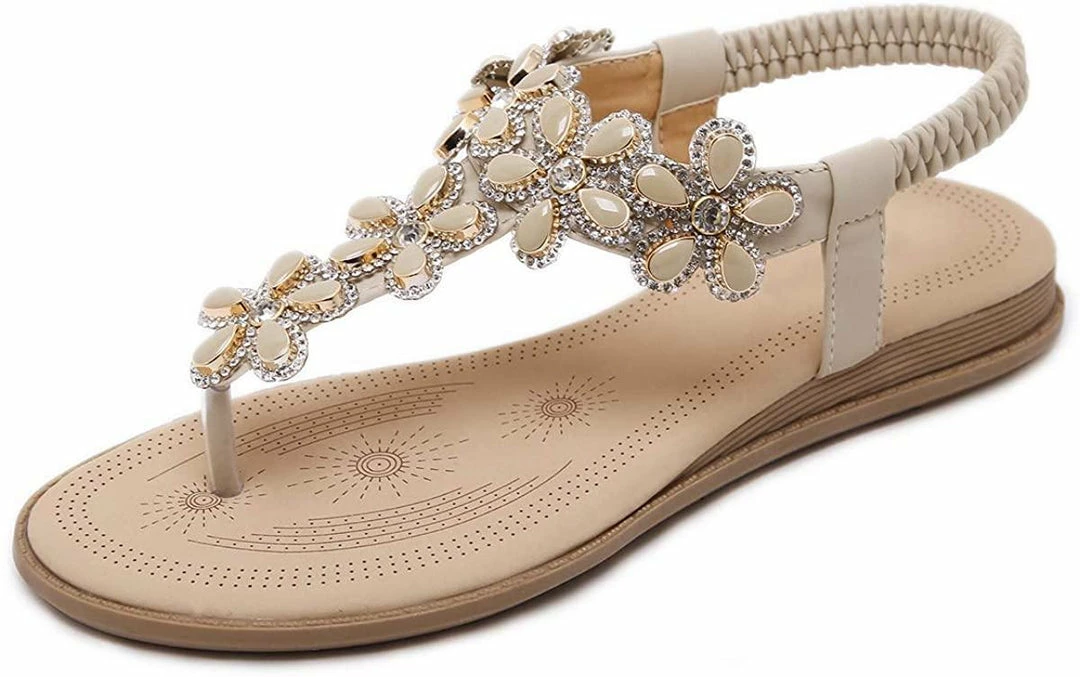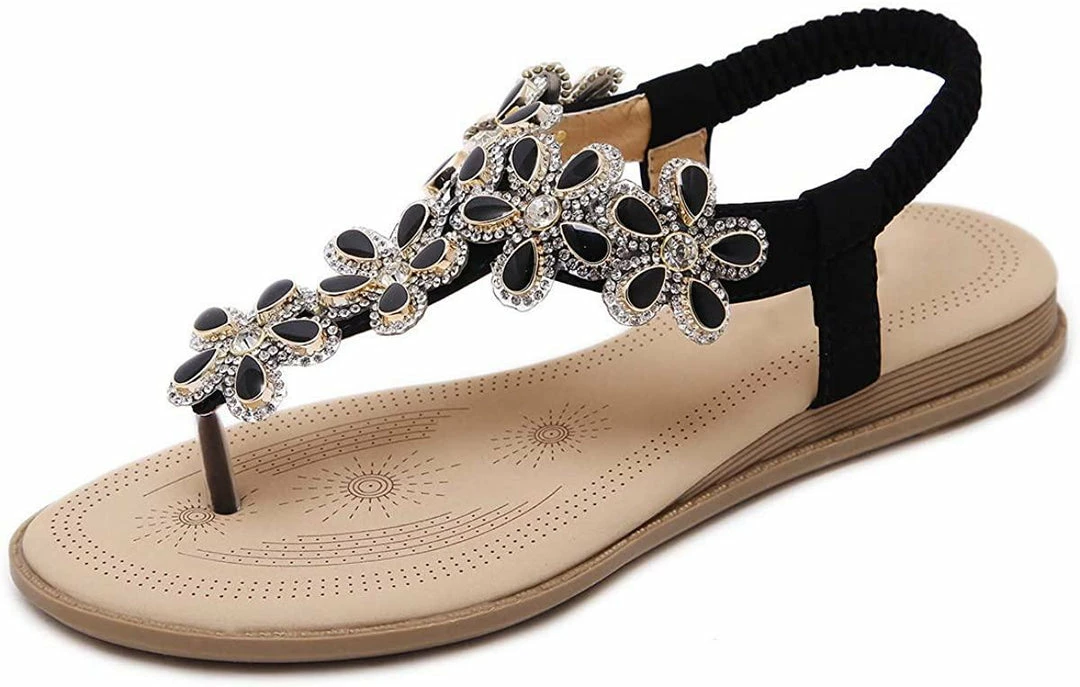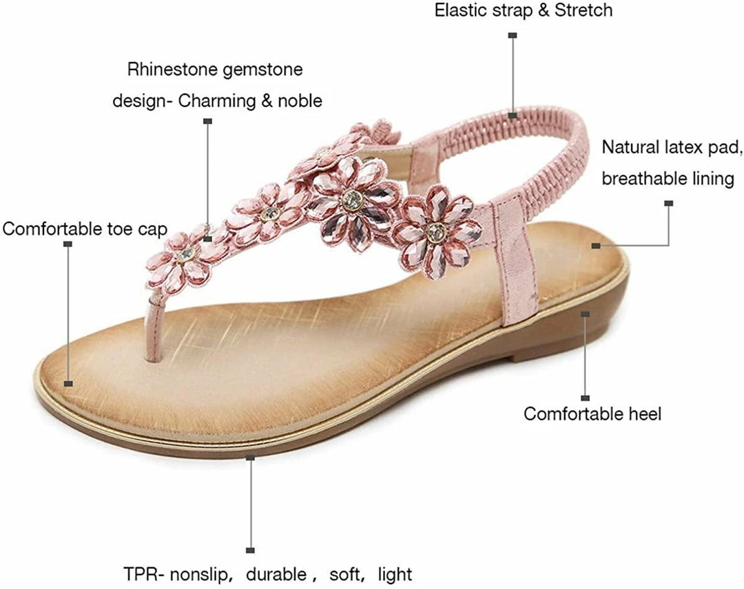- 【Design】: Classic, elegant and fashionable flat rhinestone sandals with unique rhinestones & Hand-made colorful bohemian beads Embellishment,to make your feet looks sexy,charming.