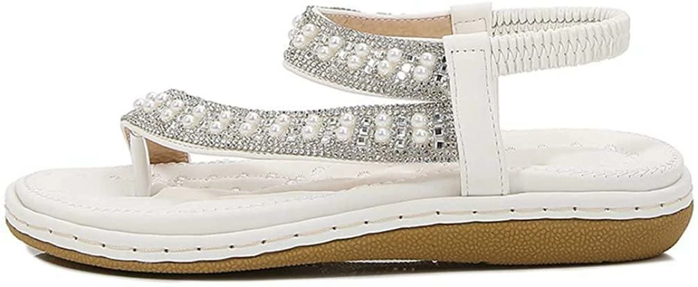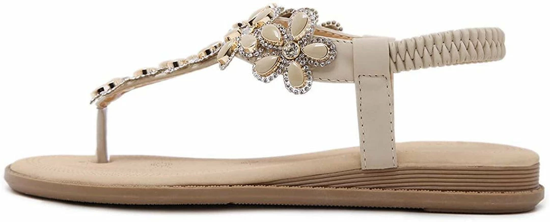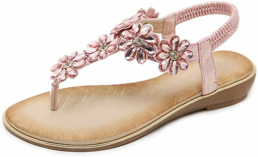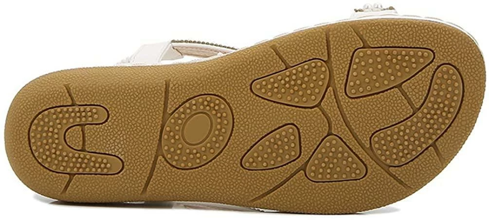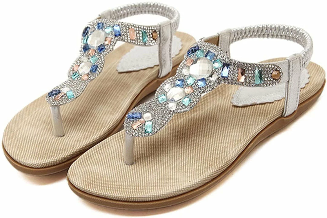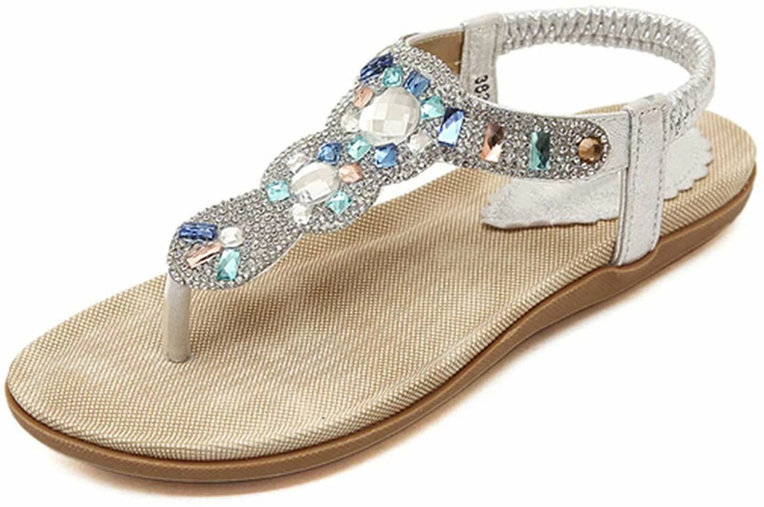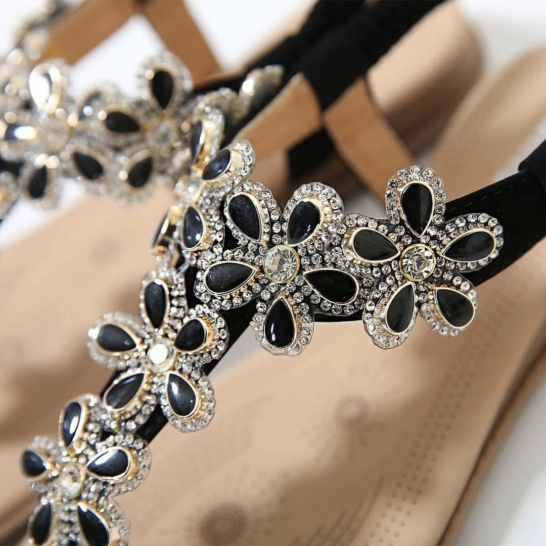 - 【Design】: Classic, elegant and fashionable flat rhinestone sandals with unique rhinestones & Hand-made colorful bohemian beads Embellishment,to make your feet looks sexy,charming.