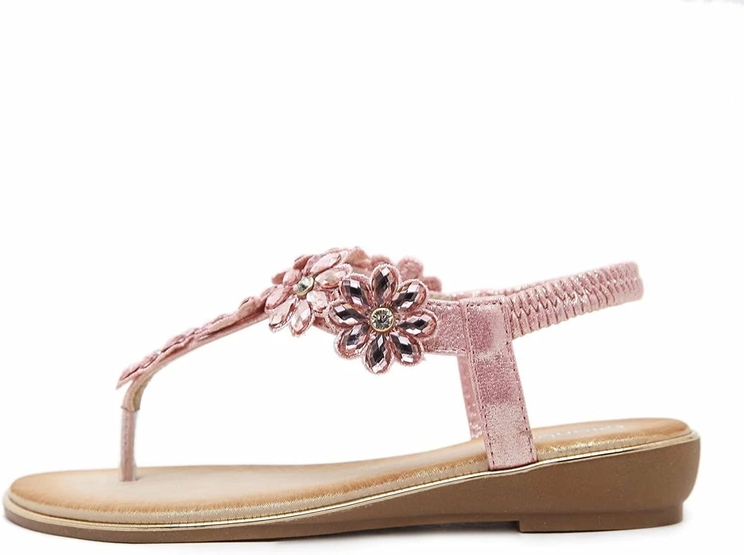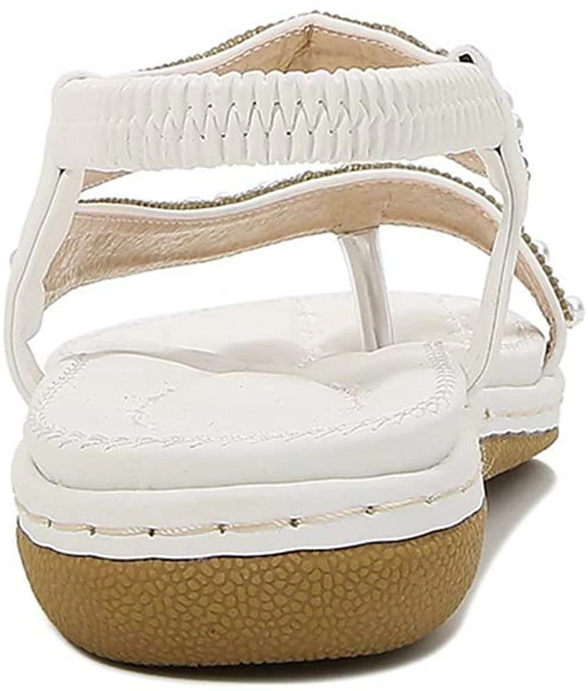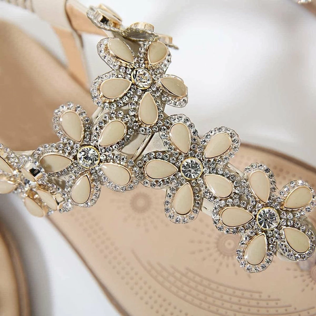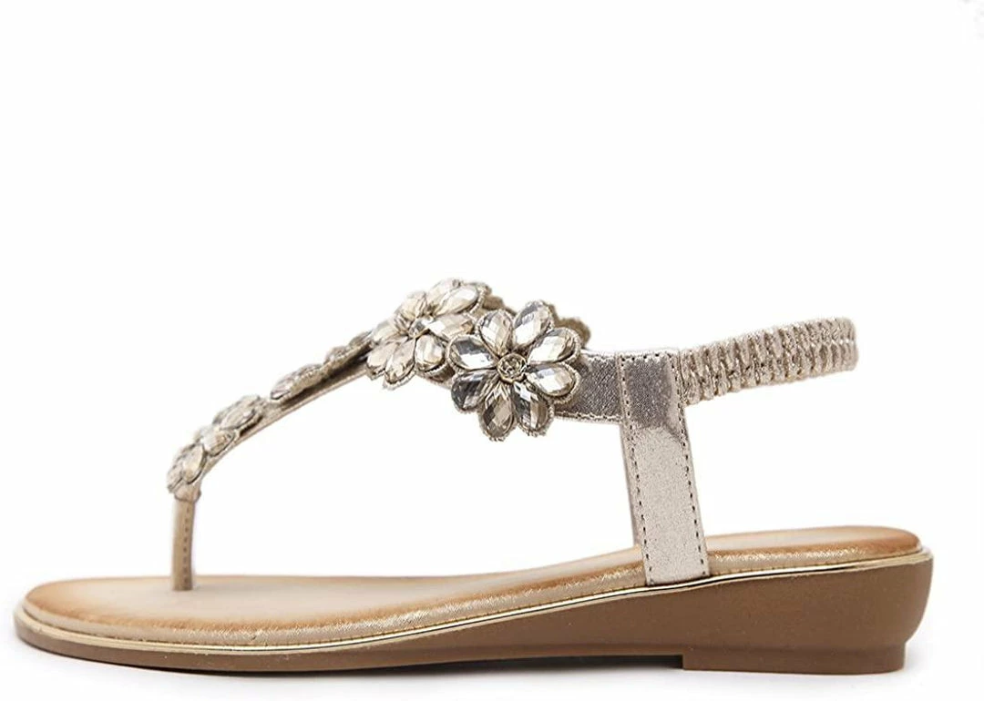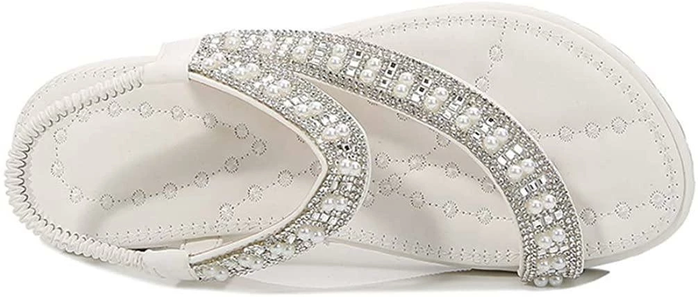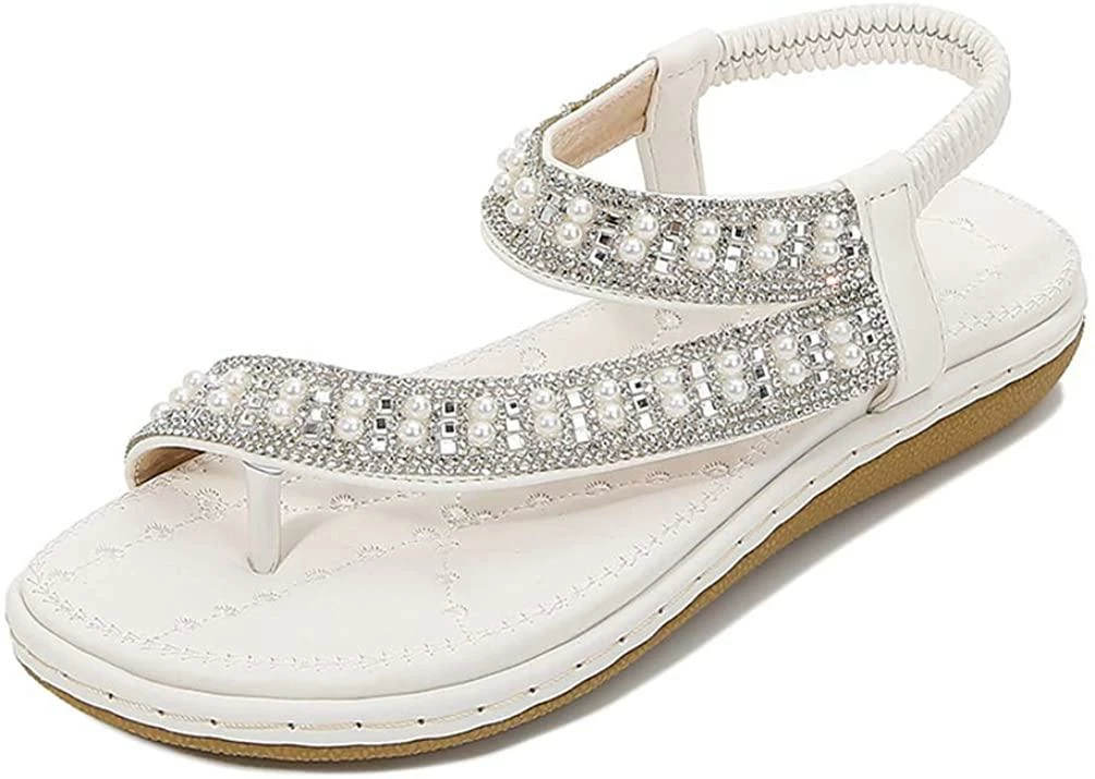 - 【Design】: Classic, elegant and fashionable flat rhinestone sandals with unique rhinestones & Hand-made colorful bohemian beads Embellishment,to make your feet looks sexy,charming.