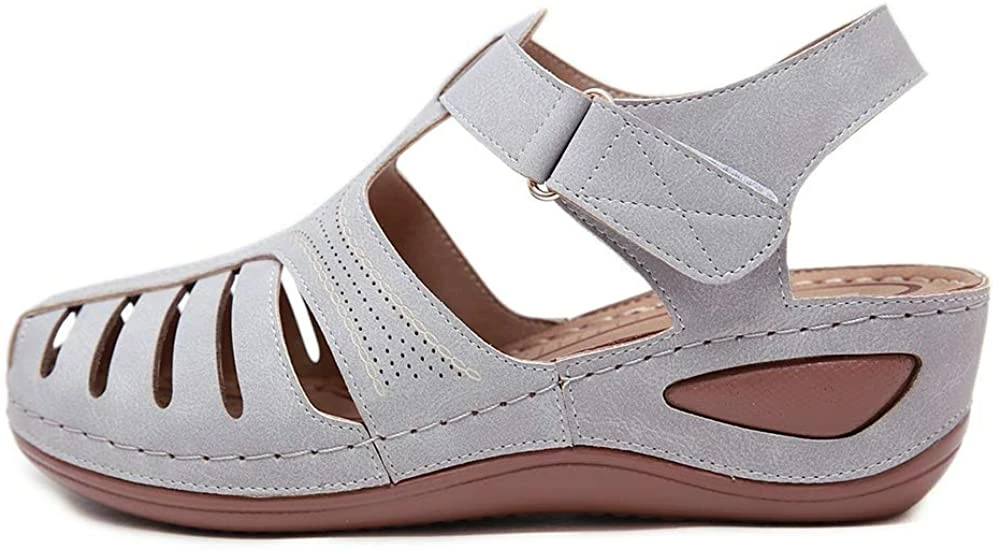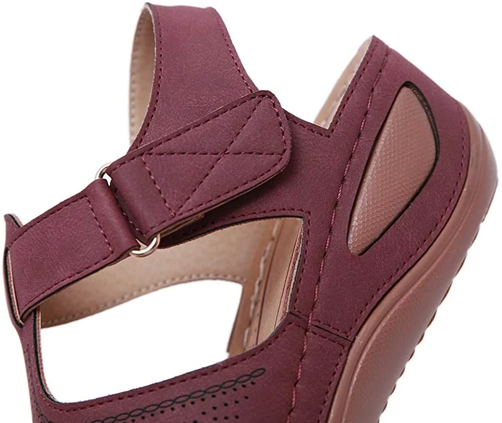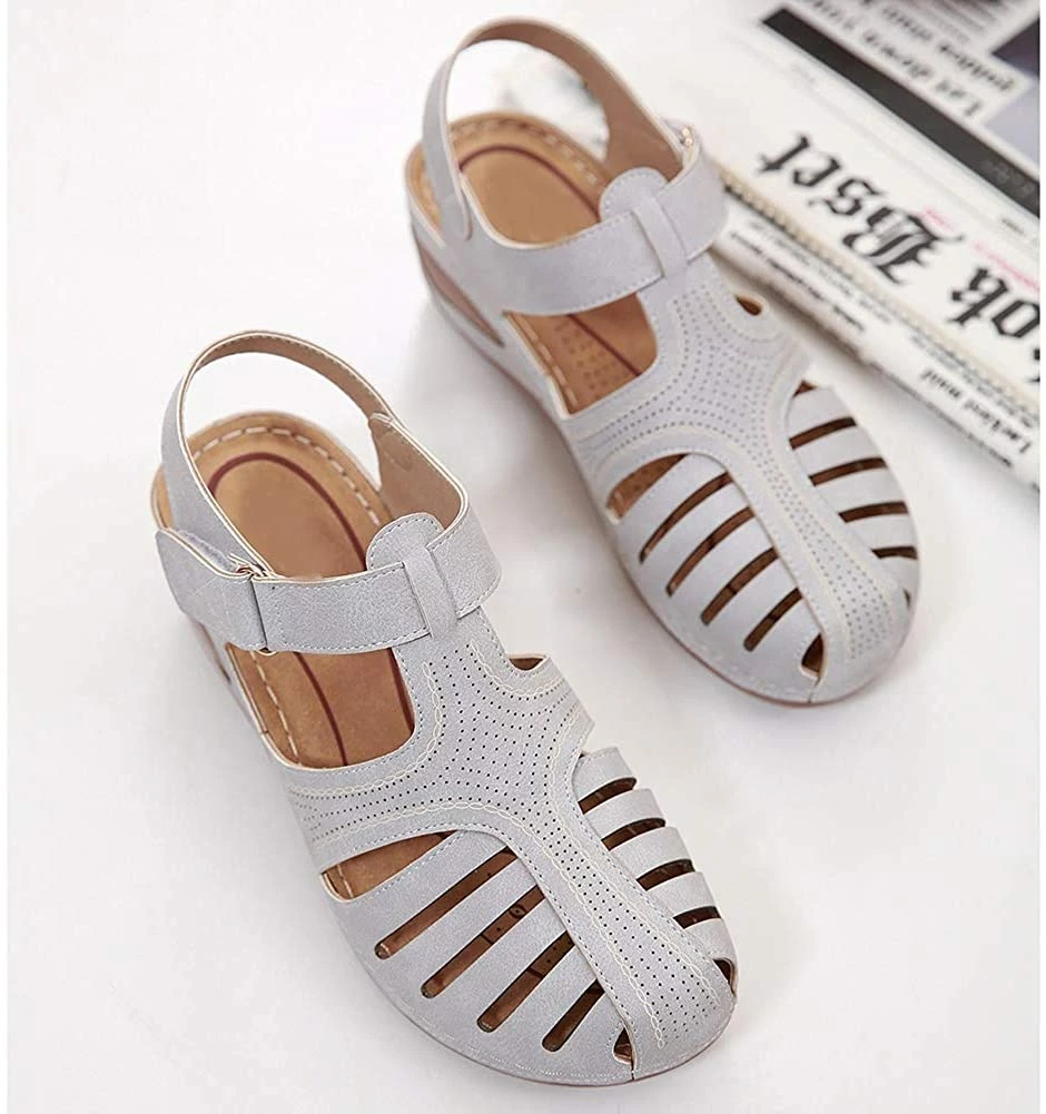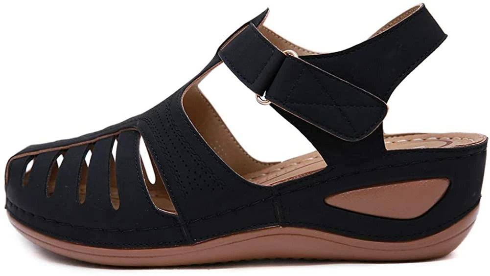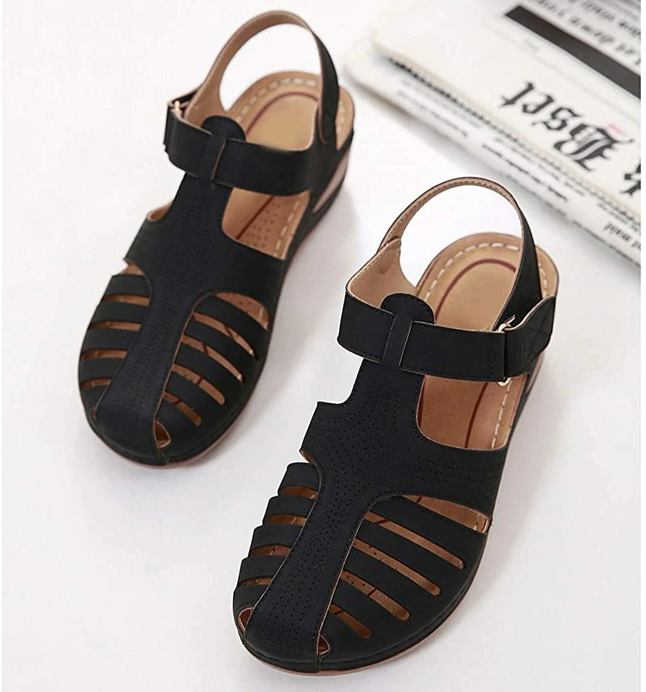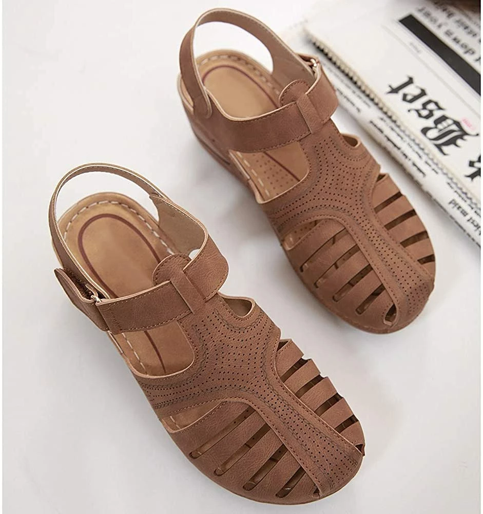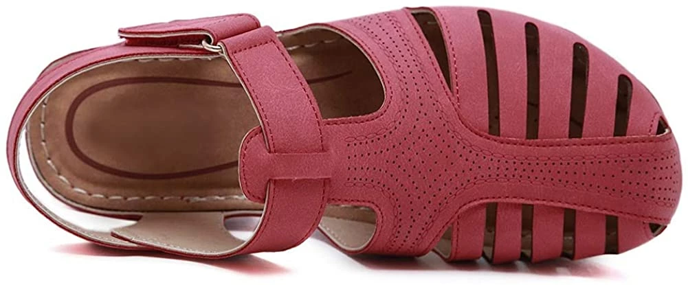 - Style: Classic, Elegant and Fashionable Flat Wedge Outdoor Sandals With Unique Bohemia Velcro Design, Easy to Take on And off.