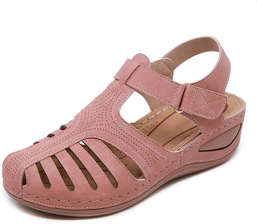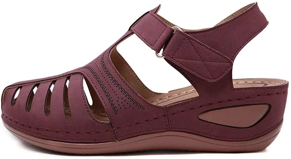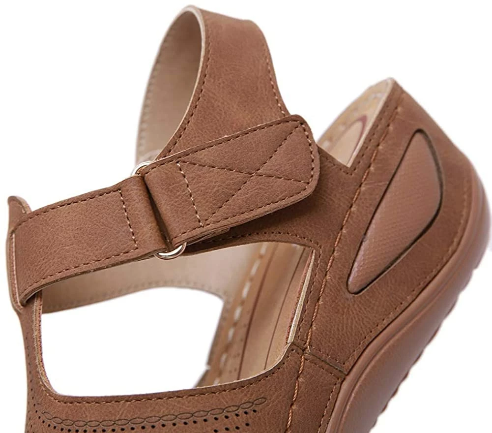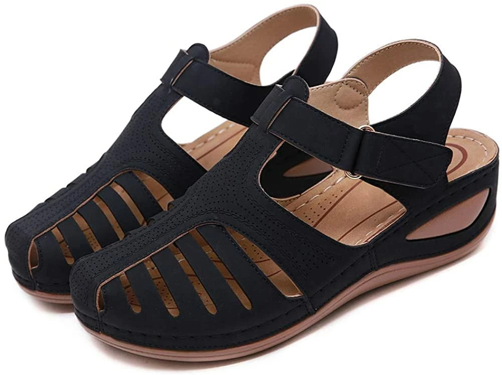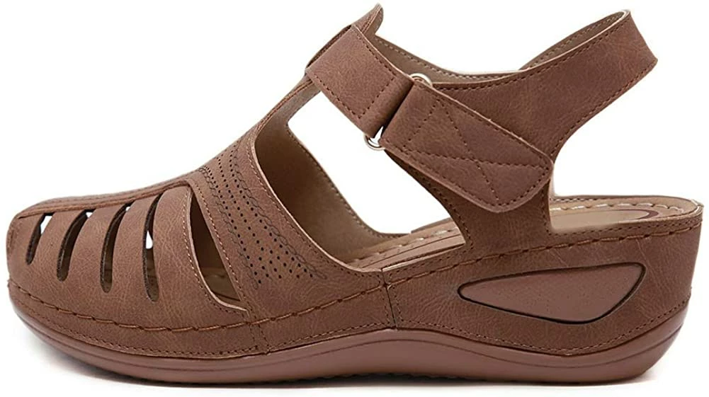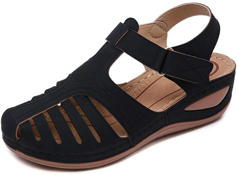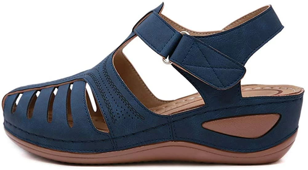 - Style: Classic, Elegant and Fashionable Flat Wedge Outdoor Sandals With Unique Bohemia Velcro Design, Easy to Take on And off.
