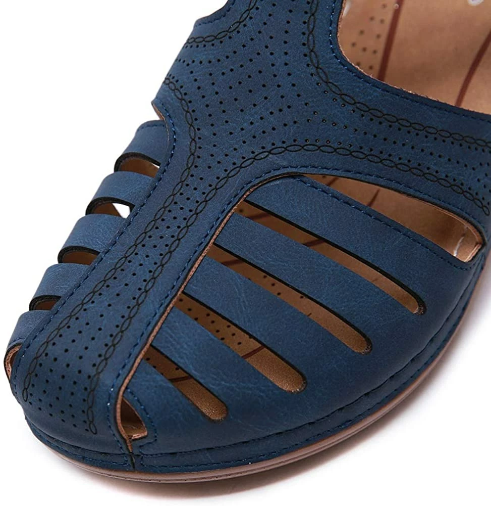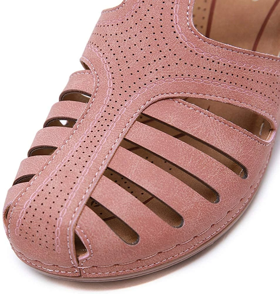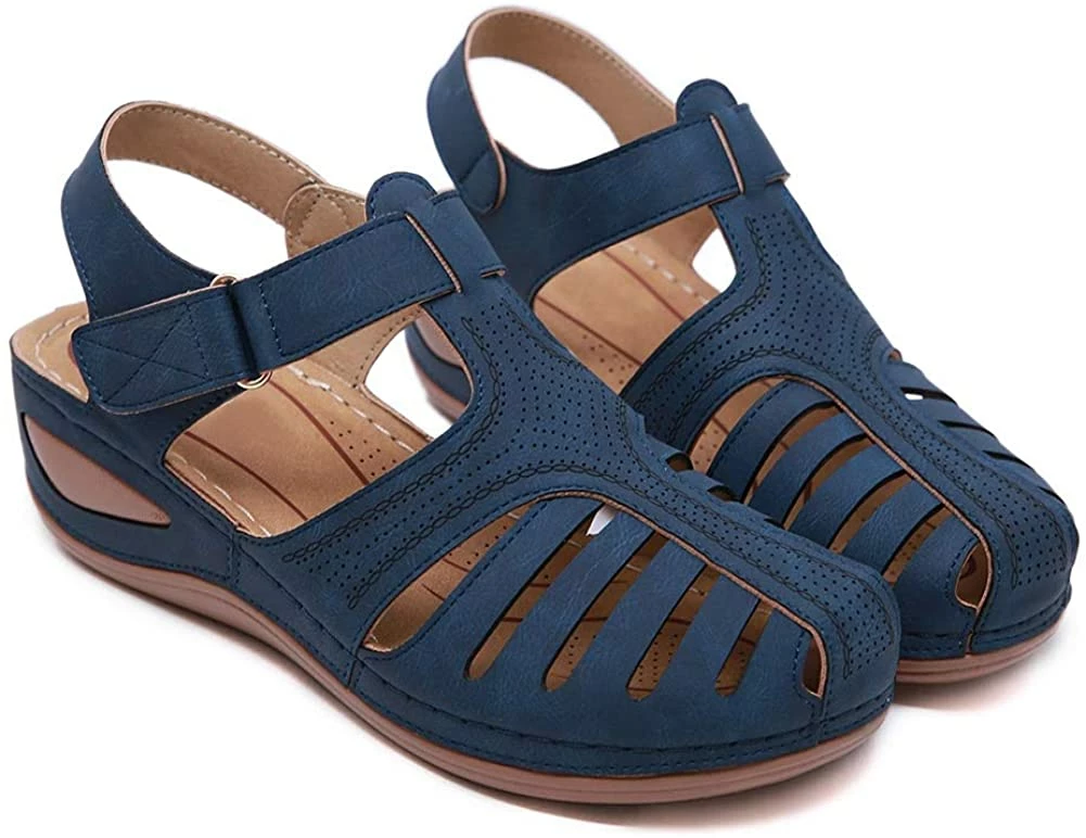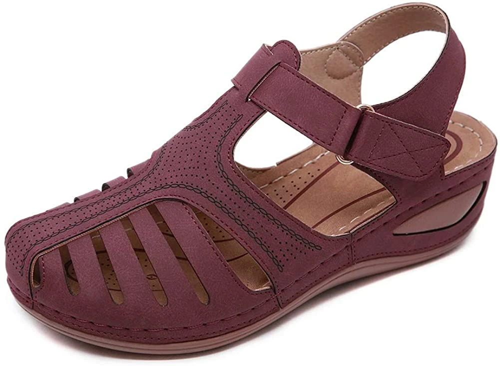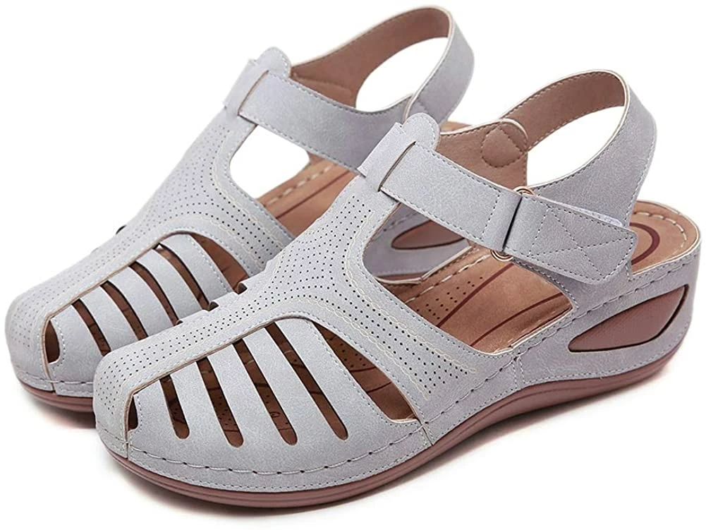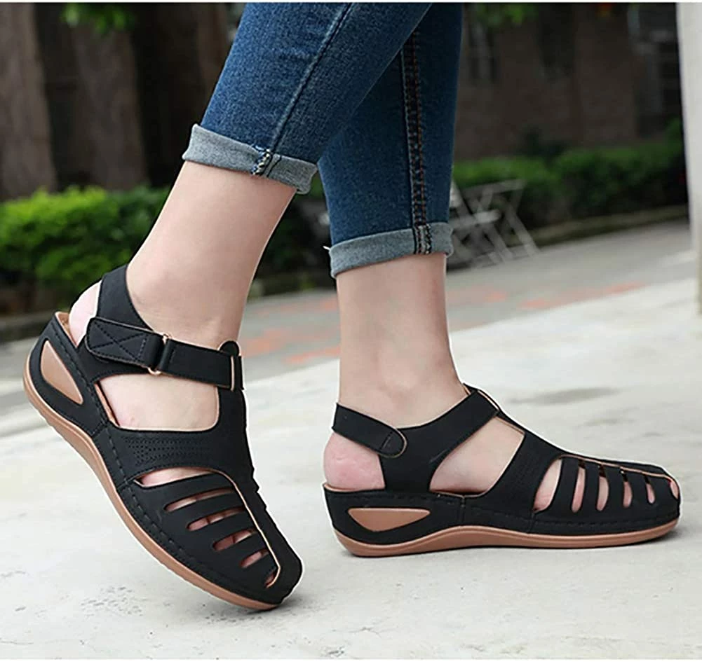 - Style: Classic, Elegant and Fashionable Flat Wedge Outdoor Sandals With Unique Bohemia Velcro Design, Easy to Take on And off.