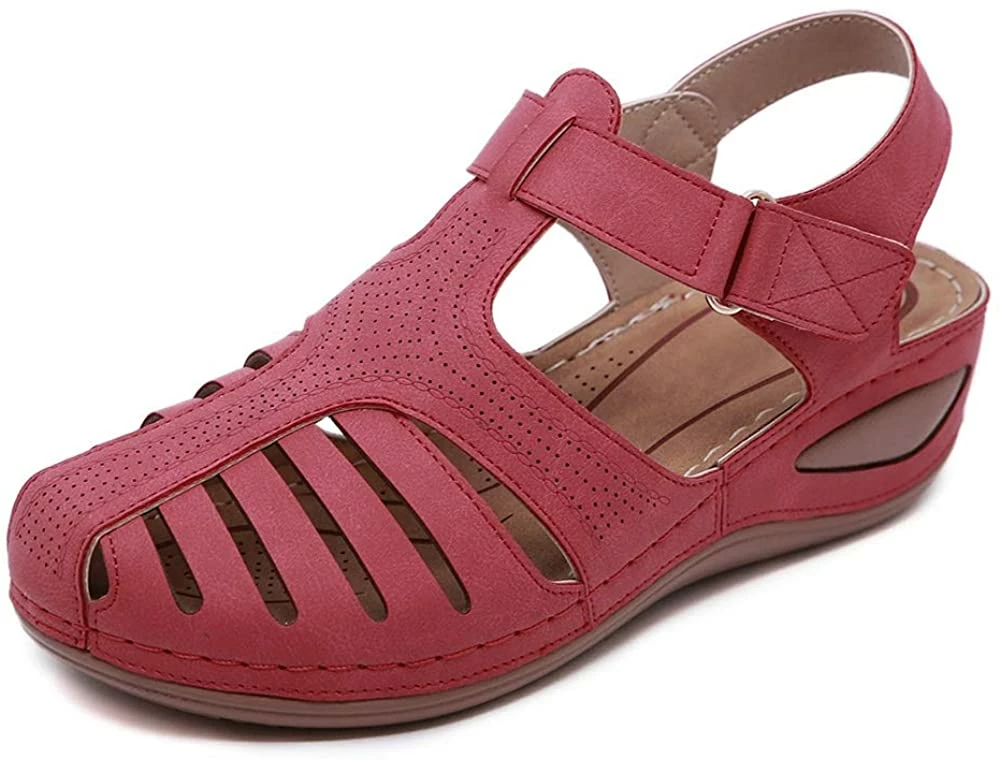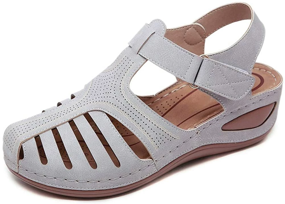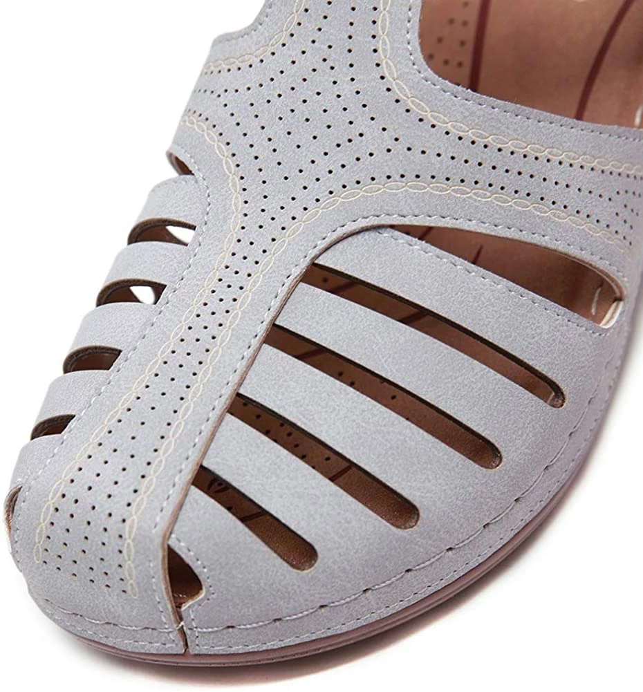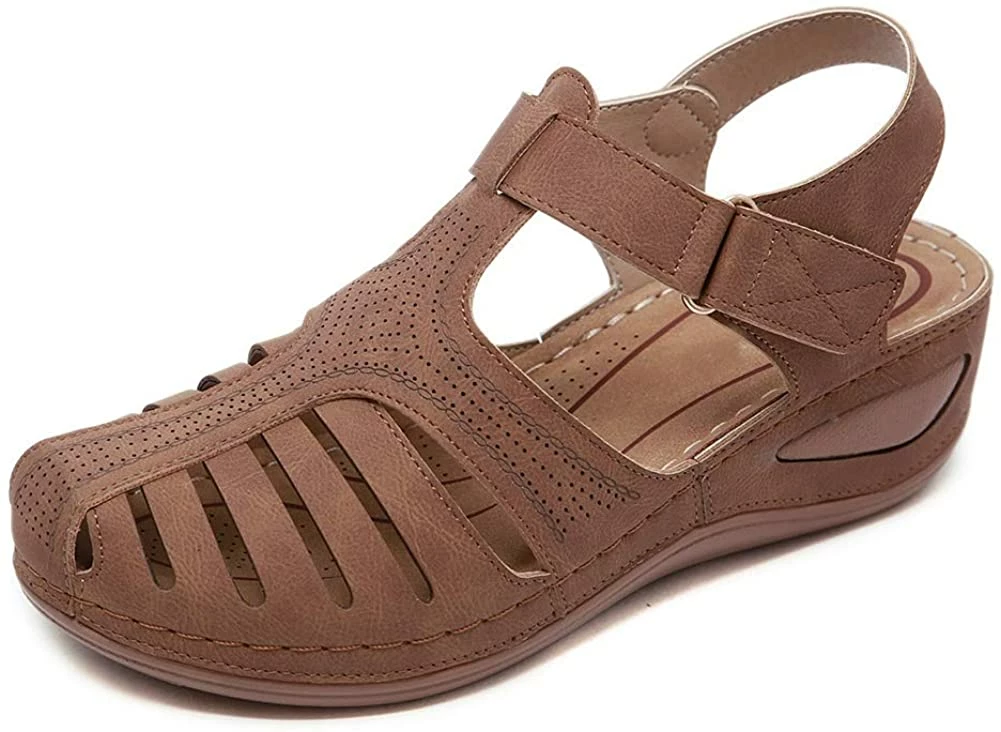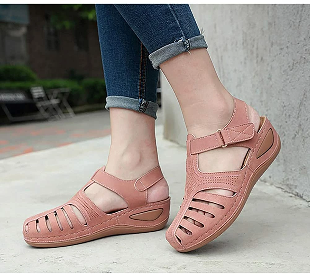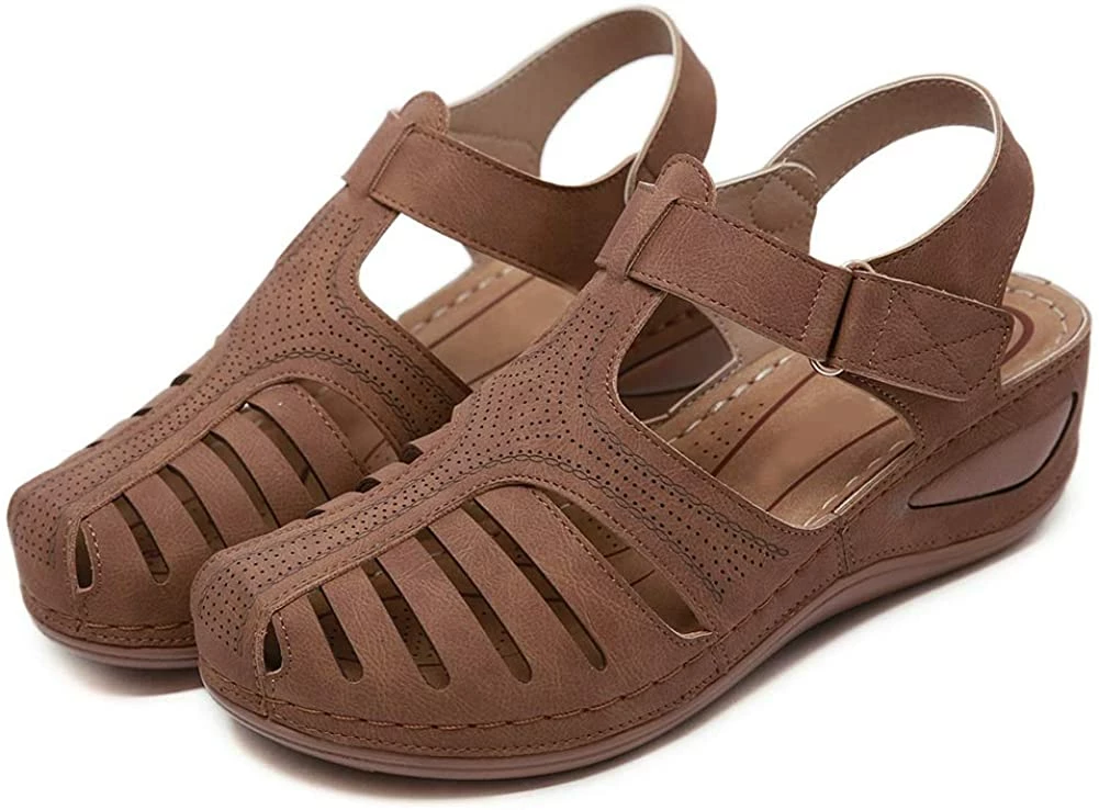 - Style: Classic, Elegant and Fashionable Flat Wedge Outdoor Sandals With Unique Bohemia Velcro Design, Easy to Take on And off.