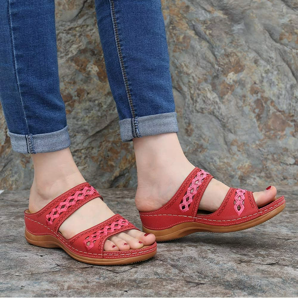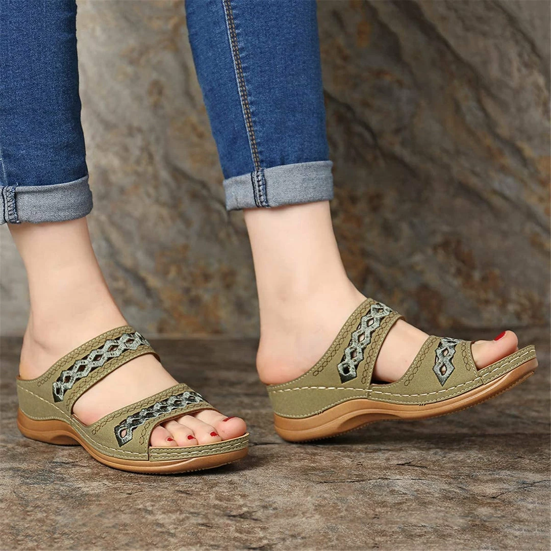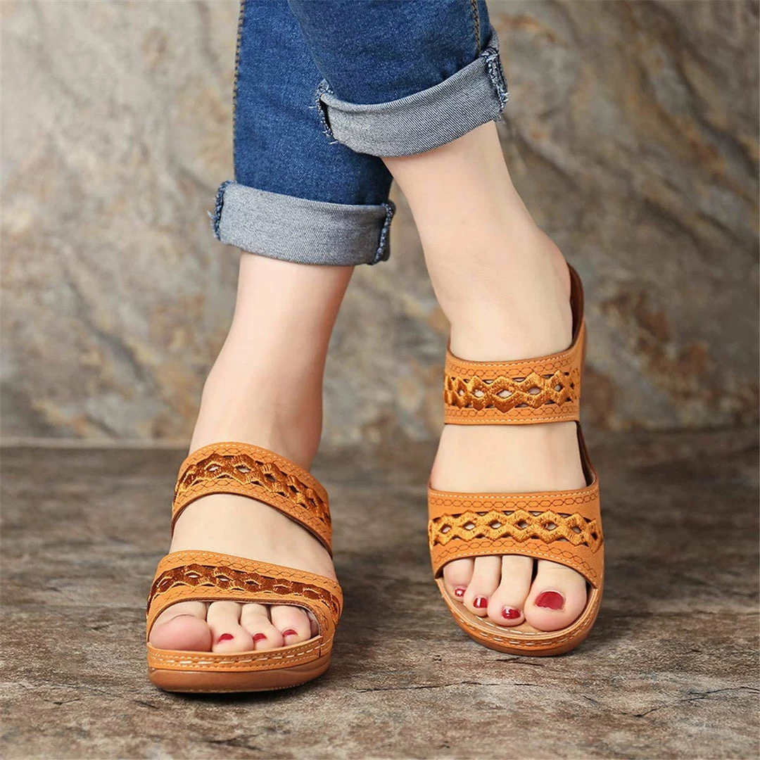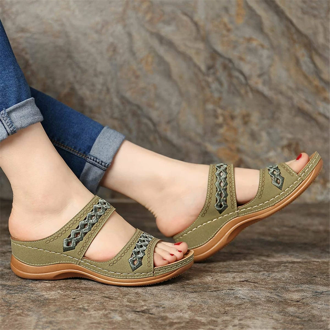Womens Wedge Sandals Open Toe Cross Strap Beach Casual Flip-flops Shoes