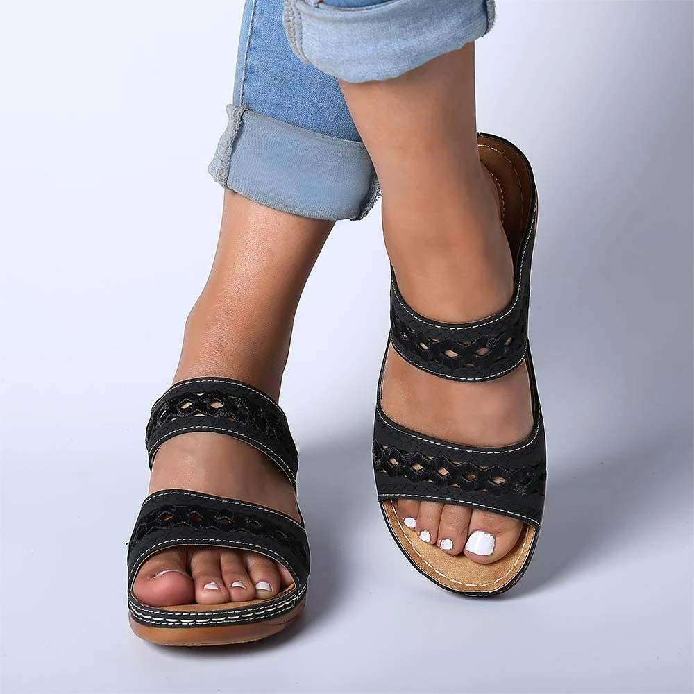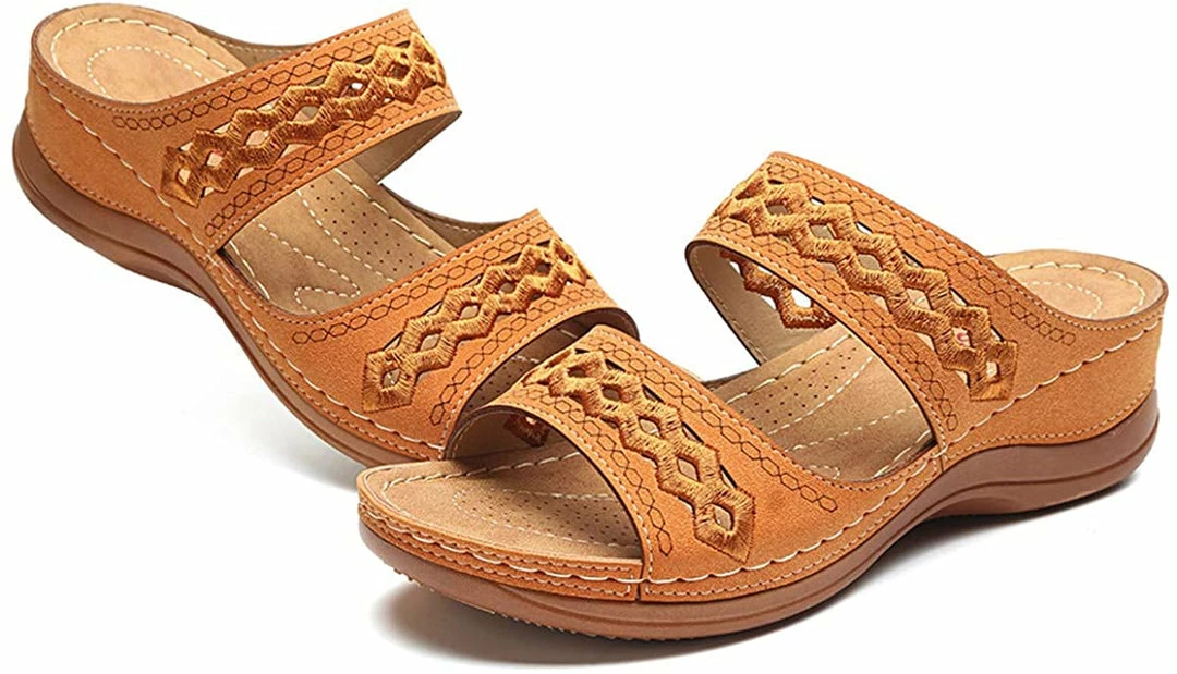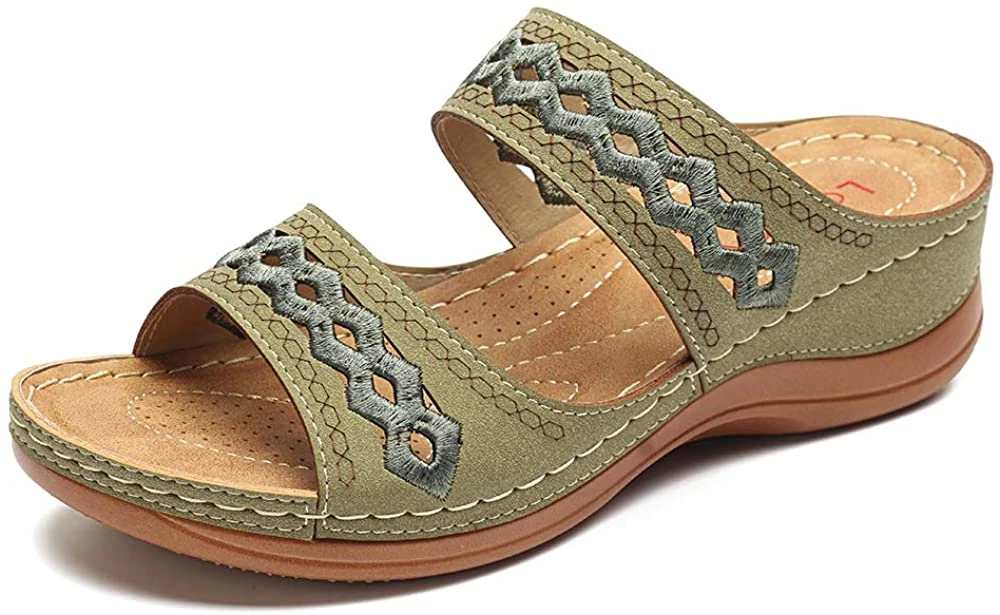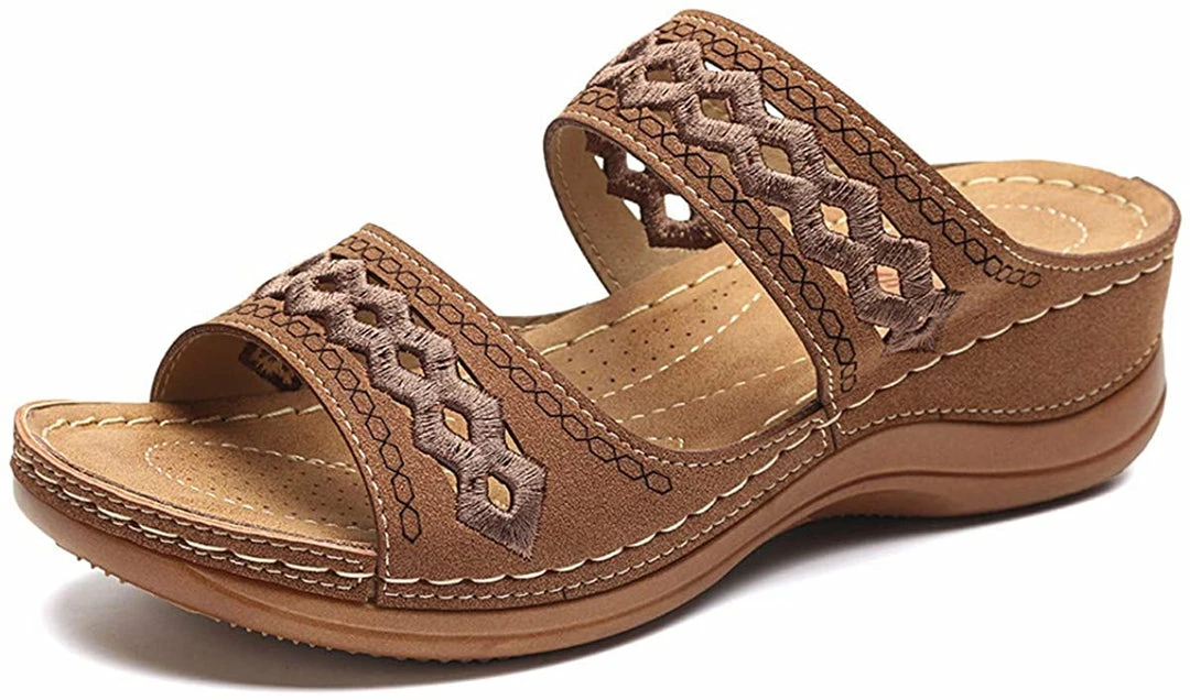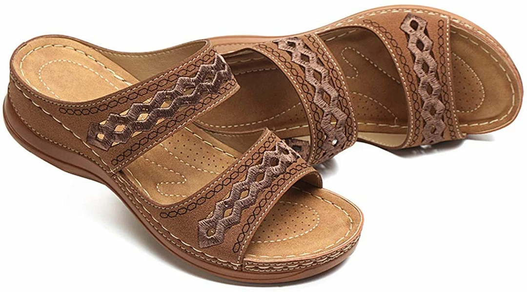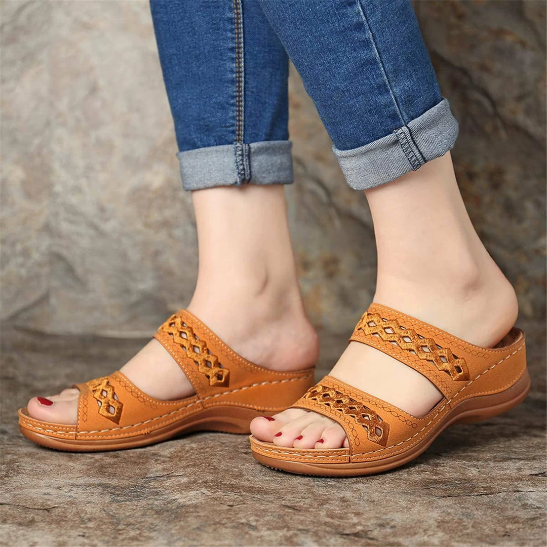 Womens Wedge Sandals Open Toe Cross Strap Beach Casual Flip-flops Shoes