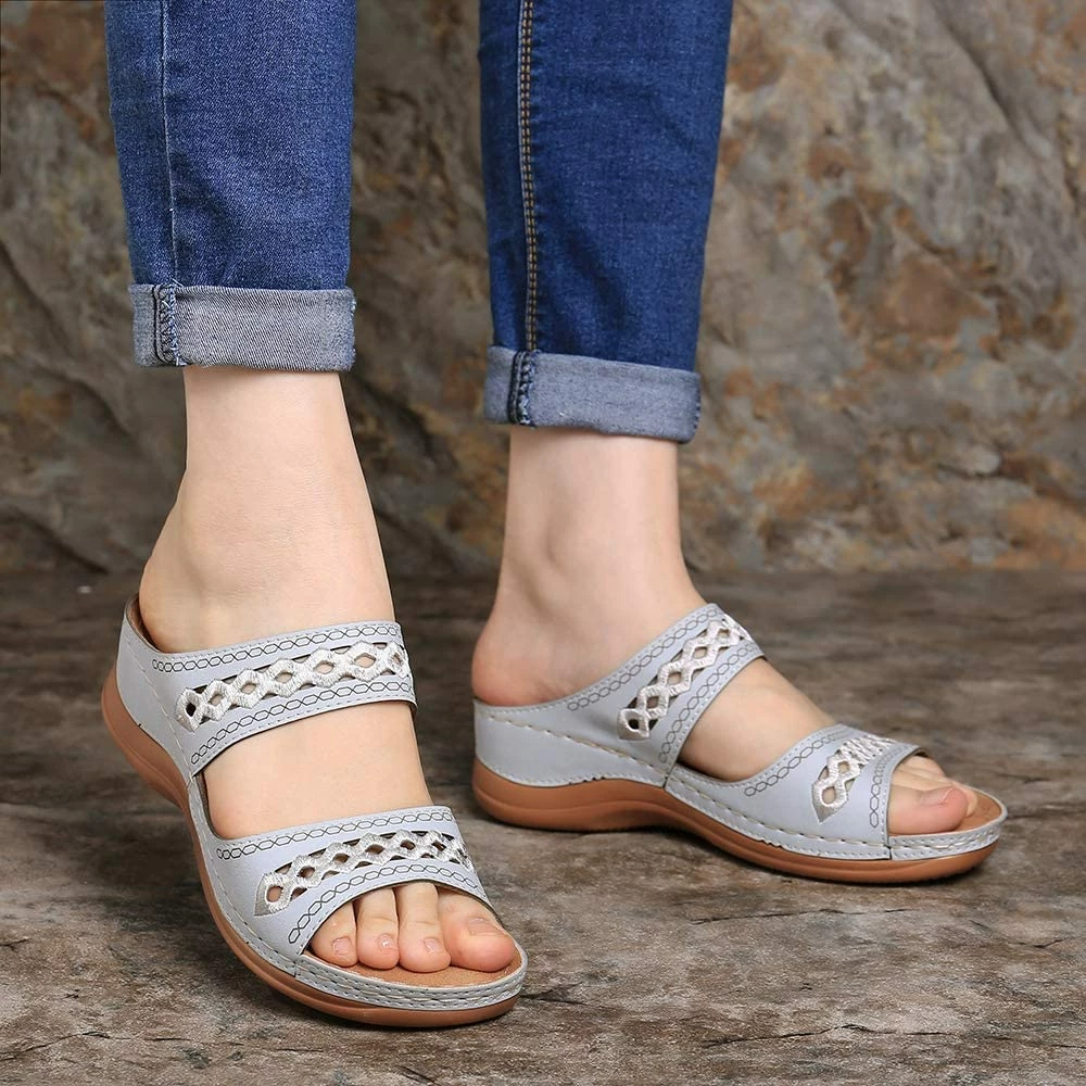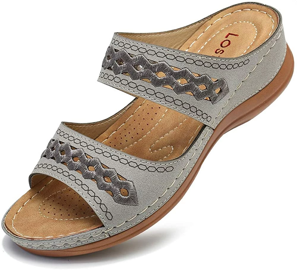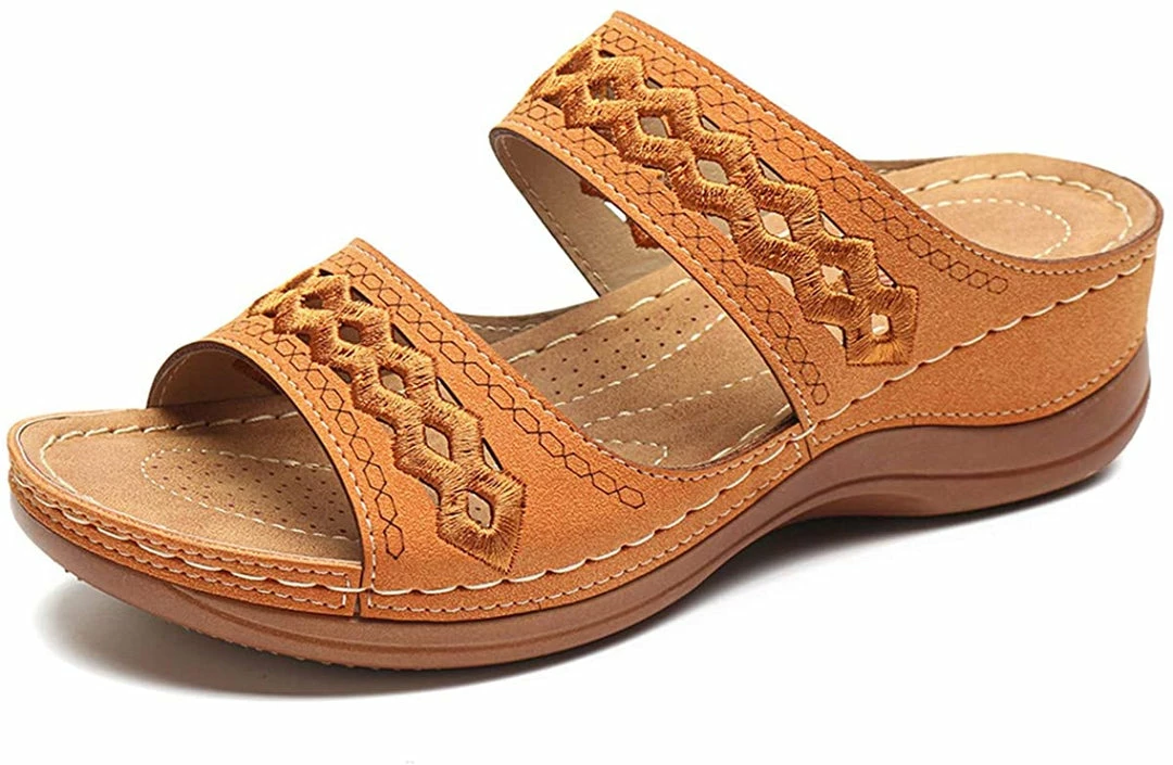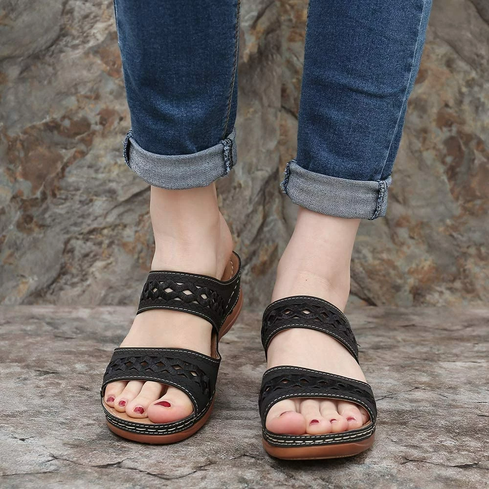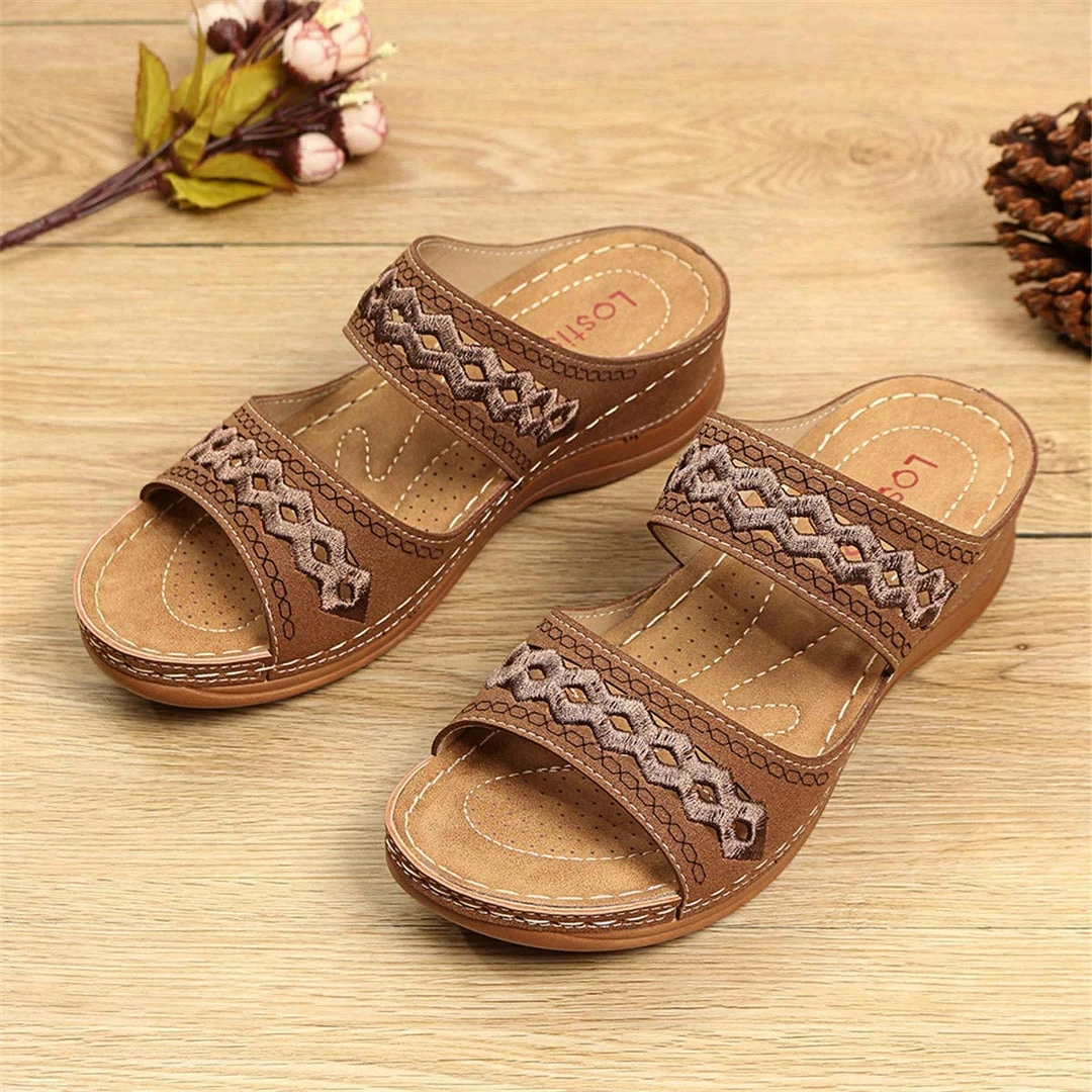 - ❤COMFORT WEDGE SANDAL: Insole is Cushioned for Added Comfort – Faux Leather Upper and Lining Rubber Outsole. Lightweight style with padded footbed and low wedge heel walkable comfort for a day