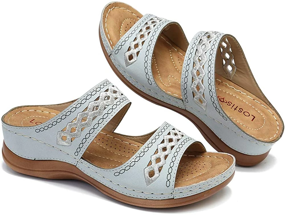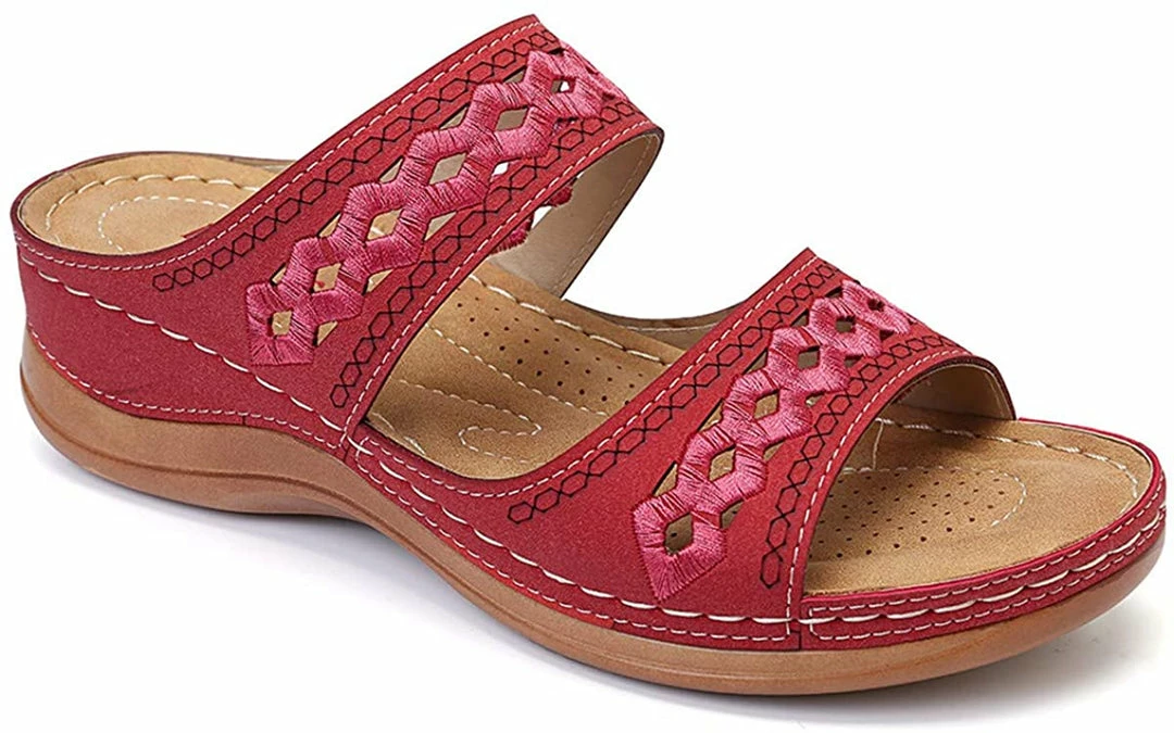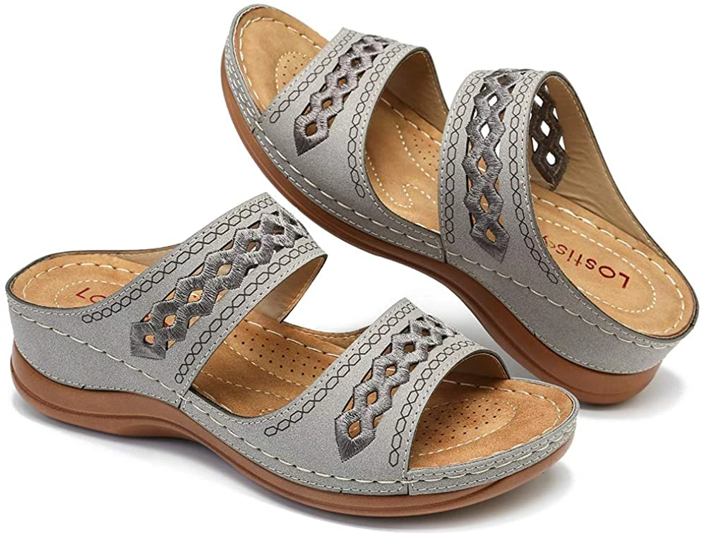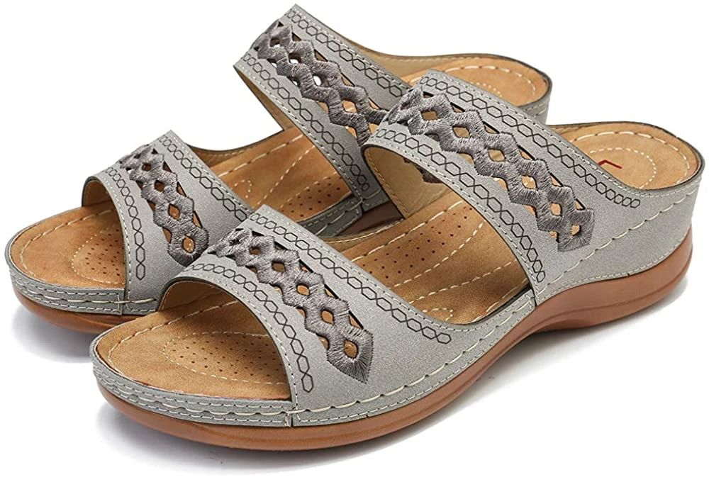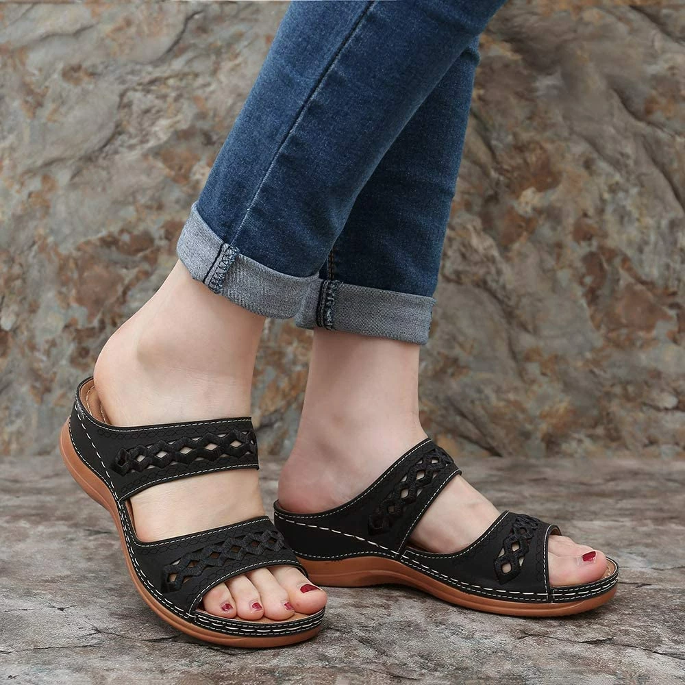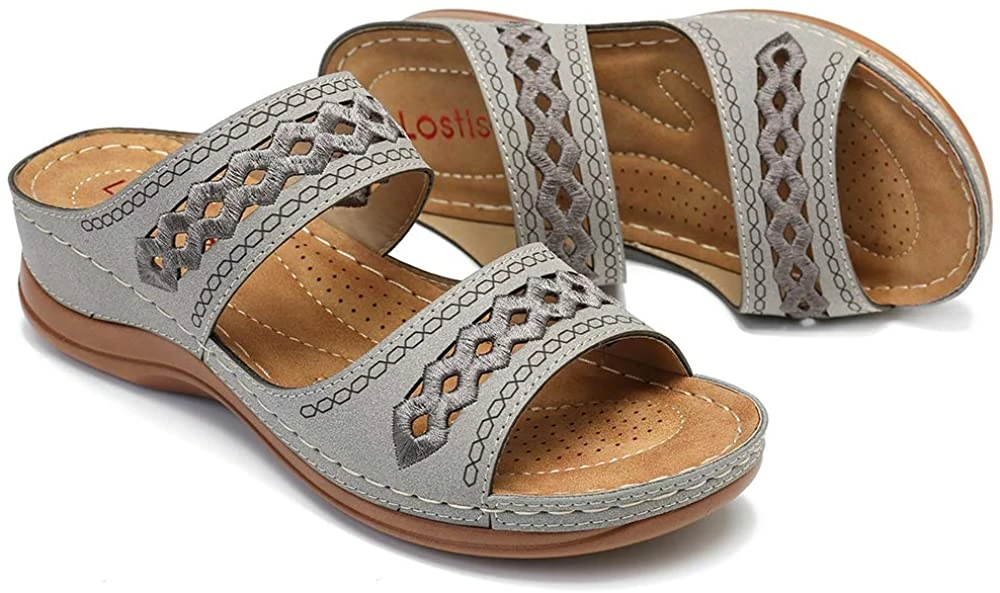 - ❤COMFORT WEDGE SANDAL: Insole is Cushioned for Added Comfort – Faux Leather Upper and Lining Rubber Outsole. Lightweight style with padded footbed and low wedge heel walkable comfort for a day